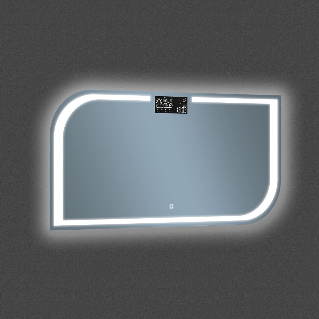 Lustro uniwersalne Meteo prostokątne podświetlane LED bez ramy ze stacją pogodową i z włącznikiem dotykowym 4LED w rozmiarze 120 x 60 cm