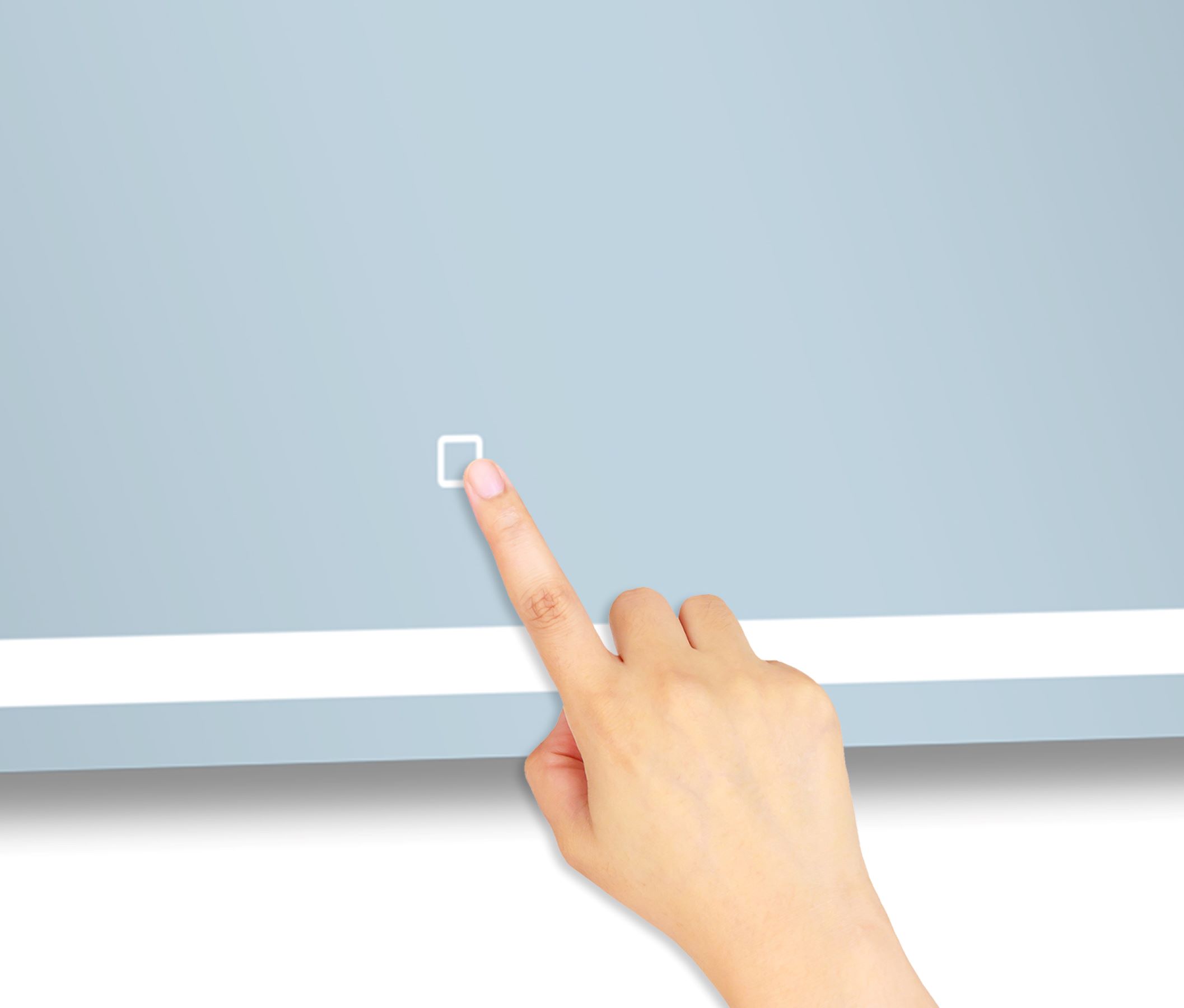 Włącznik dotykowy: Włącznik dotykowy 4 LED – najnowocześniejszy wśród sensorów. Uruchamia oświetlenie lustra za jednym dotknięciem palca. Wyróżnia się nowoczesnym kształtem w postaci zarysu kwadratu o białej barwie. Będąc pod napięciem włącznik pozostaje cały czas w funkcji czuwania, posiada własne podświetlenie LED, dzięki czemu bez problemu zlokalizujesz go w ciemnym pomieszczeniu. Średnica włącznika to 1,5 cm. Nowoczesny, innowacyjny, praktyczny.