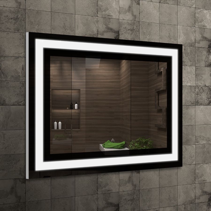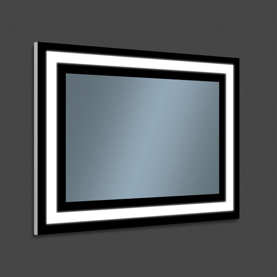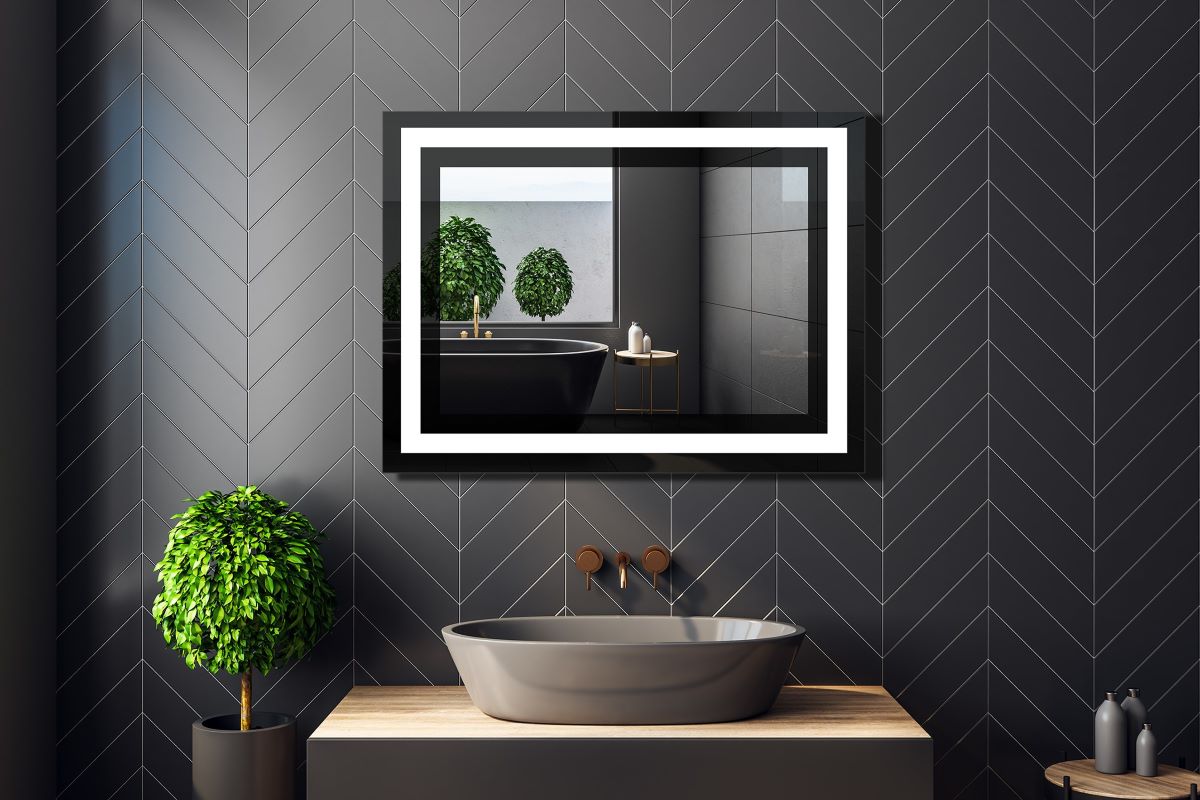 Lustro uniwersalne Nano prostokątne podświetlane LED z ramą i możliwością obustronnego montażu w rozmiarze 80 x 60 cm