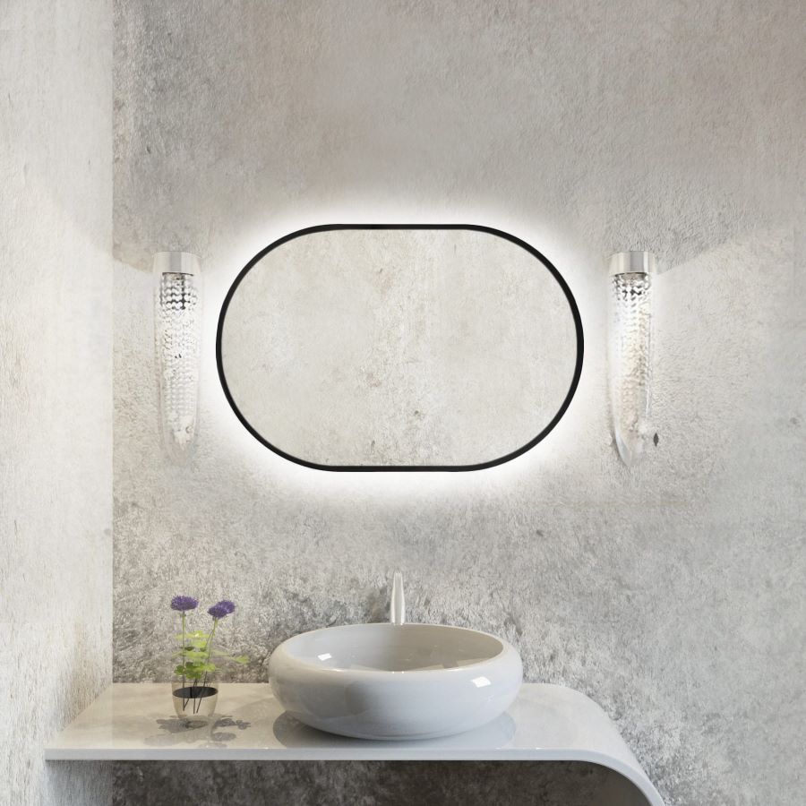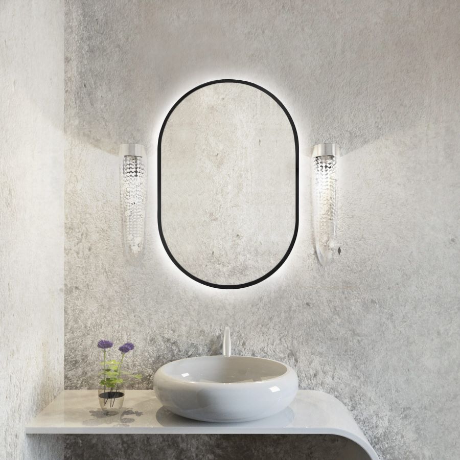 Lustro łazienkowe Pastille owalne podświetlane LED z ramą w kolorze czarnym, białym, złotym i srebrnym z zabezpieczeniami IP 65 oraz IP 67