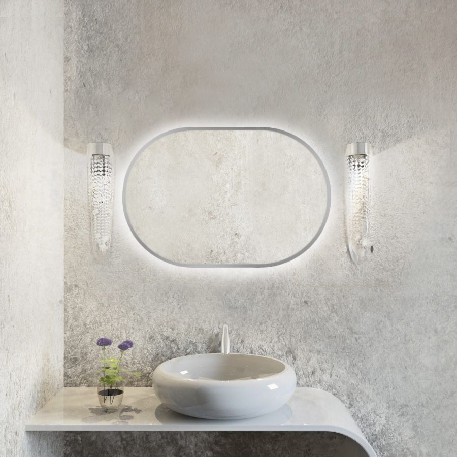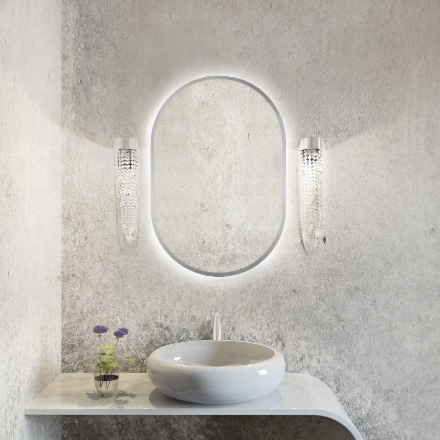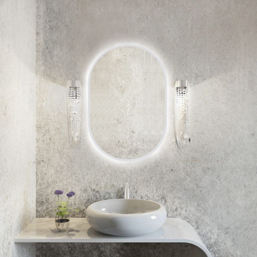 Owalne lustro Pastille podświetlane delikatnym, rozproszonym światłem LED, doskonale sprawdza się w łazience. Jego prosta i elegancka forma oraz subtelne podświetlenie tafli sprawiają, że lustro nadaje pomieszczeniu świeży a jednocześnie nieco tajemniczy wygląd. Lustro jest idealne do małych pomieszczeń, które optycznie powiększa, również za sprawą światła.