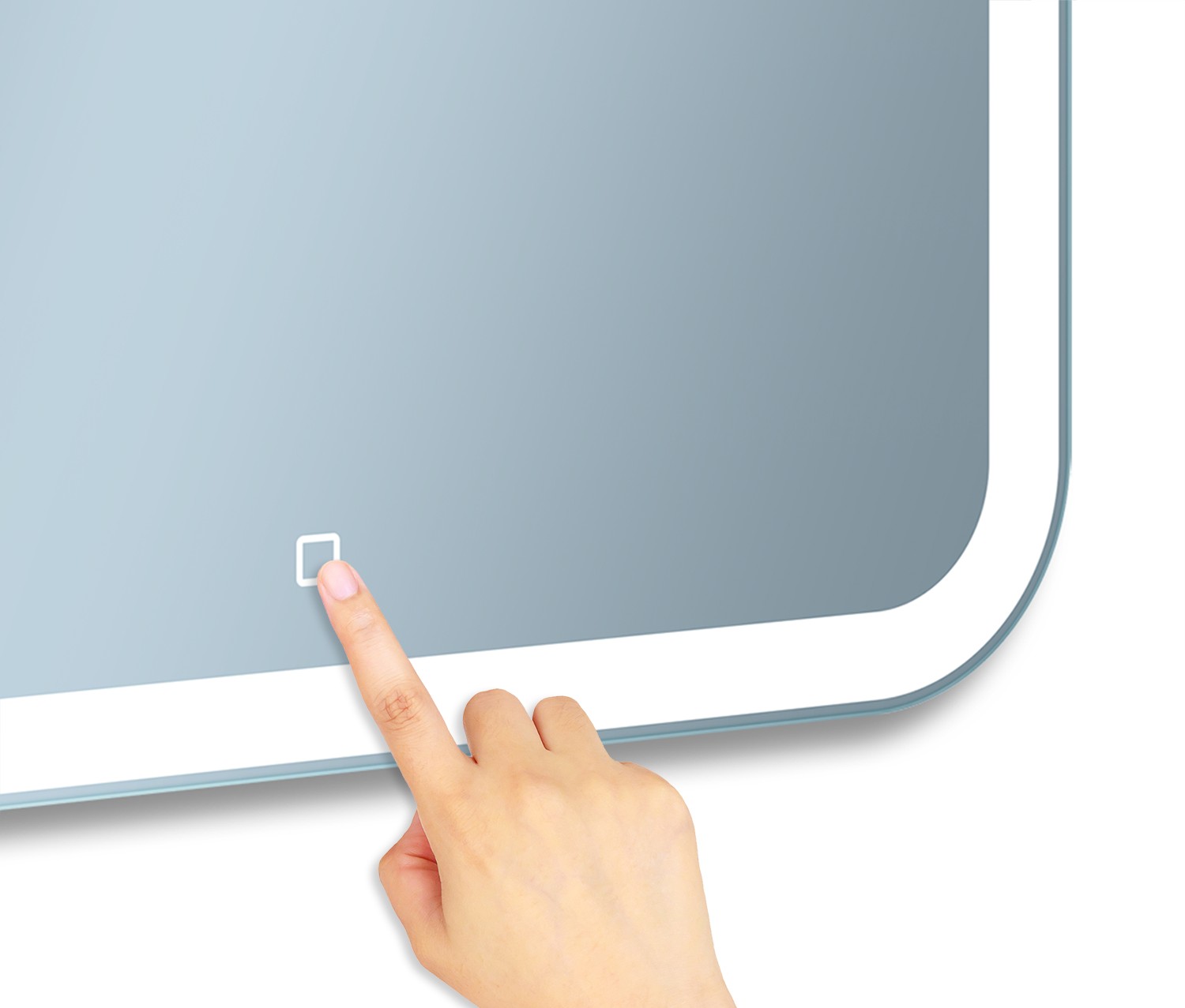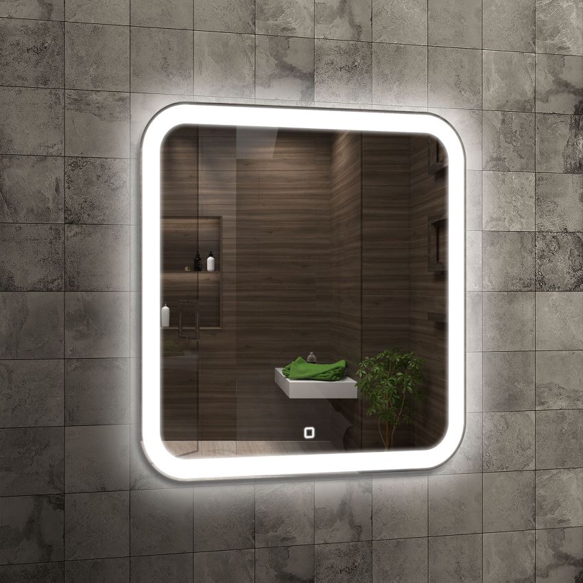 Włącznik dotykowy: Włącznik dotykowy 4 LED – najnowocześniejszy wśród sensorów. Włącznik uruchamia oświetlenie lustra za jednym dotknięciem palca. Wyróżnia się nowoczesnym kształtem w postaci zarysu kwadratu o białej barwie. Włącznik będąc pod napięciem cały czas pozostaje w funkcji czuwania, posiada własne podświetlenie LED, dzięki czemu bez problemu zlokalizujesz go w ciemnym pomieszczeniu. Średnica włącznika to 1,5 cm. Nowoczesny, innowacyjny, praktyczny.