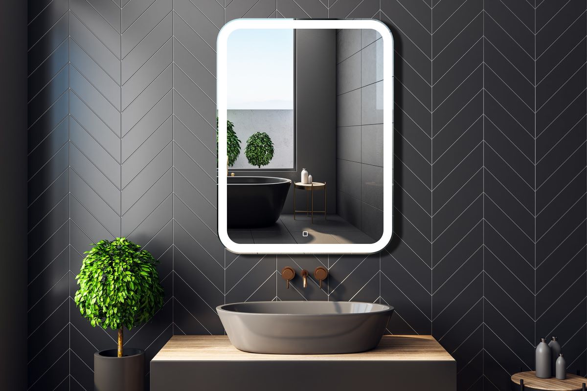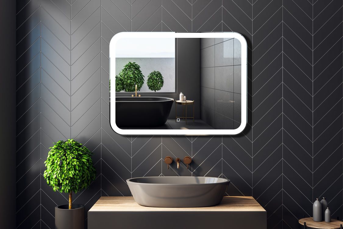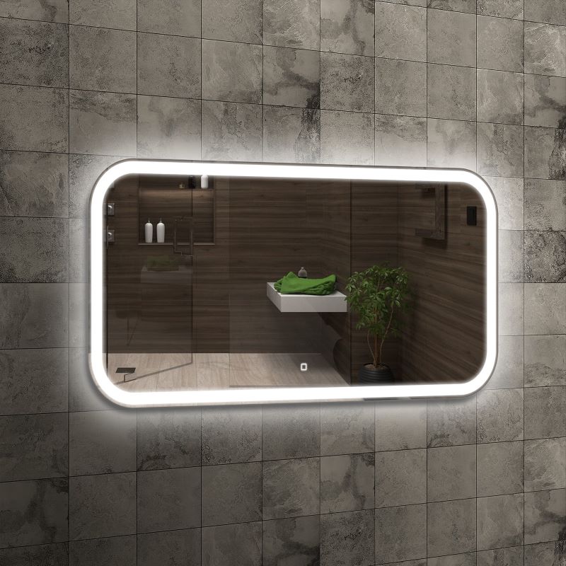 Lustro uniwersalne Prima prostokątne podświetlane LED o zaokrąglonych narożnikach i z włącznikiem dotykowym 4LED