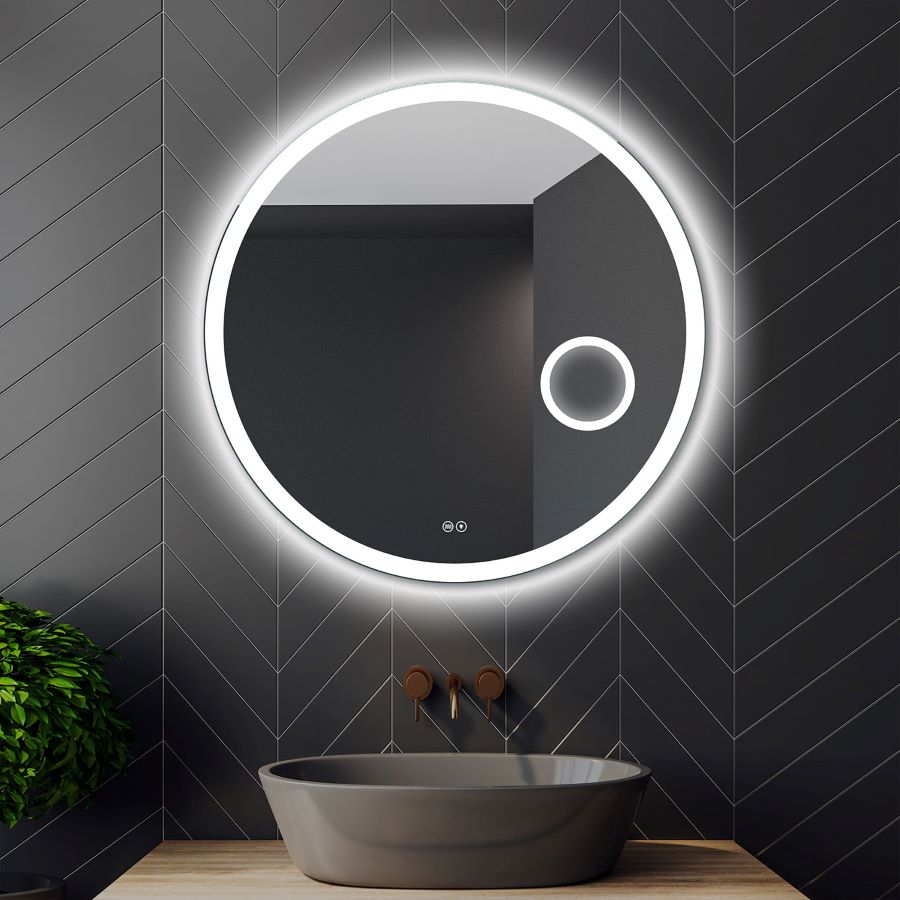 Lustro uniwersalne Radson okrągłe podświetlane LED z włącznikiem dotykowym LED, matą grzewczą i podświetlanym lusterkiem kosmetycznym w rozmiarze 80 cm