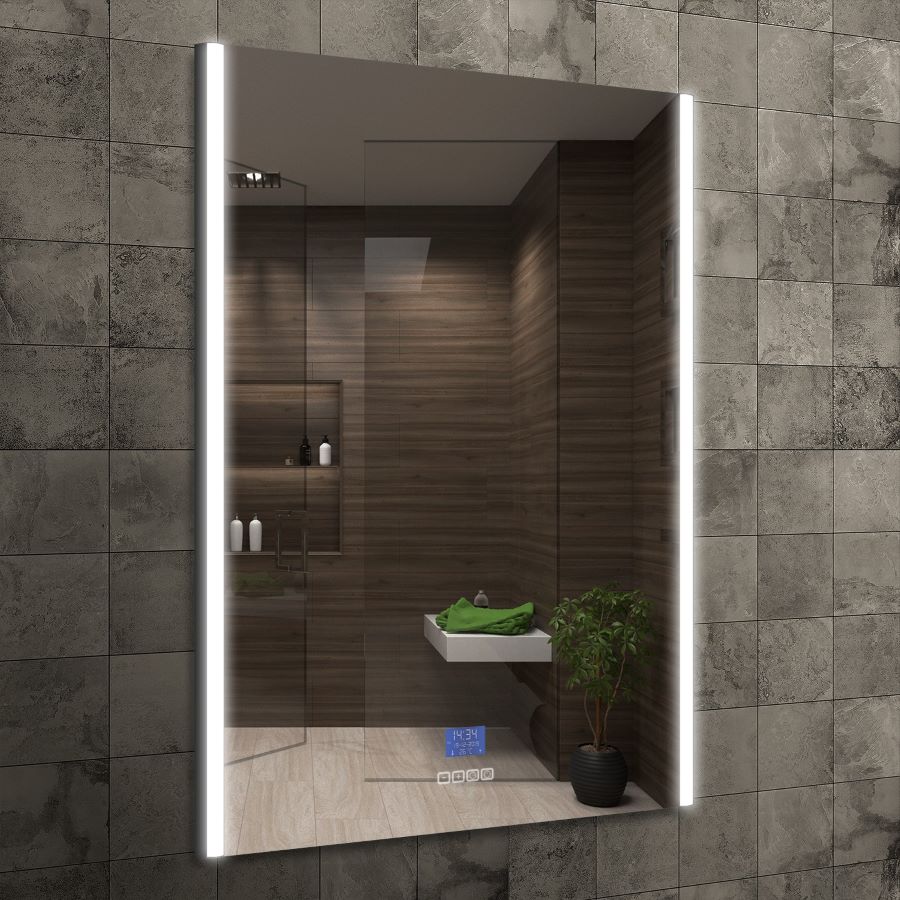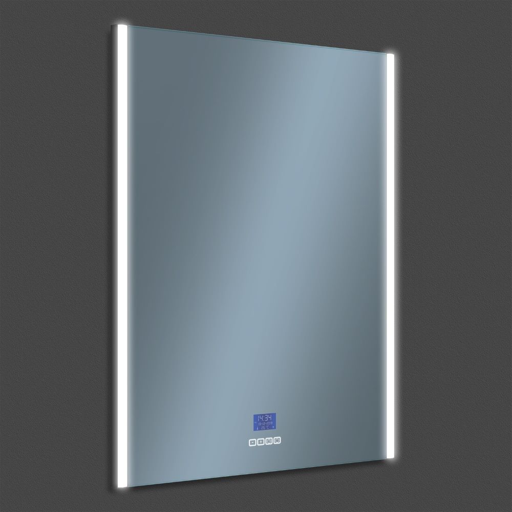 Lustro uniwersalne Timeled prostokątne podświetlane LED z czarnym profilem aluminiowym ze stacją dotykową LCD w rozmiarze 60 x 80 cm