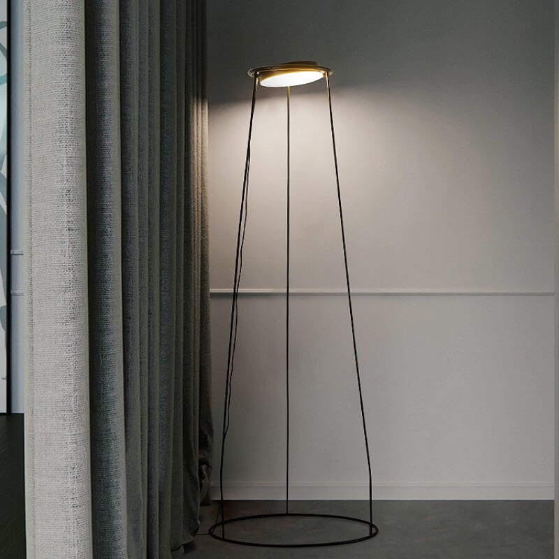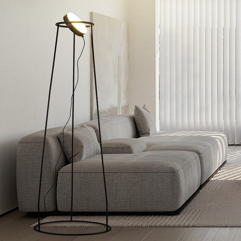 Minimalistyczna lampa podłogowa z geometrycznym stelażem – nowoczesne oświetlenie do salonu, sypialni i biura