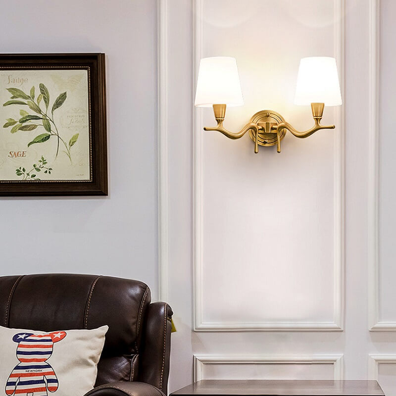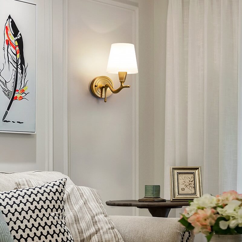 Elegancka klasyczna miedziana lampa ścienna. Kinkiet idealny do sypialni, salonu, gabinetu, korytarza.