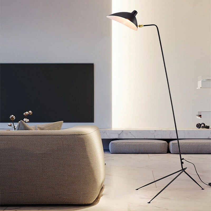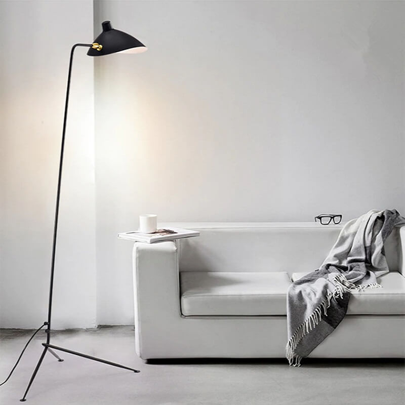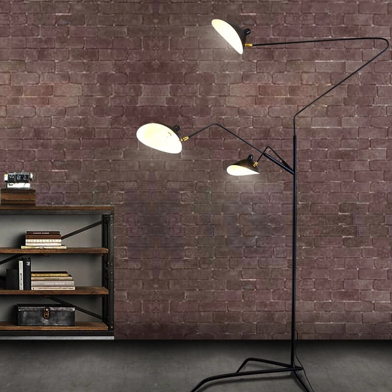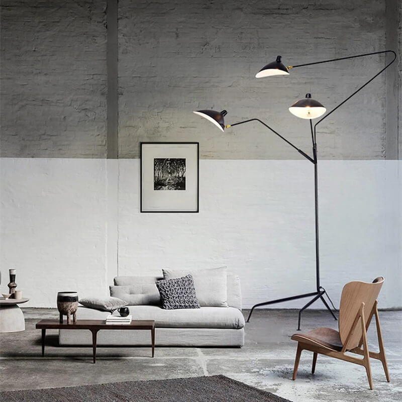 Lampa podłogowa Crane charakteryzuje się fikuśnymi, metalowymi kloszami i minimalistyczną podstawą, która nadaje oprawom lekkości. Klosze wewnątrz są białe co pozwala doskonale odbijać światło. Ponadczasowy projekt nawiązuje do minimalistycznej stylistyki, która doskonale wpisuje się w industrialne aranżacje.