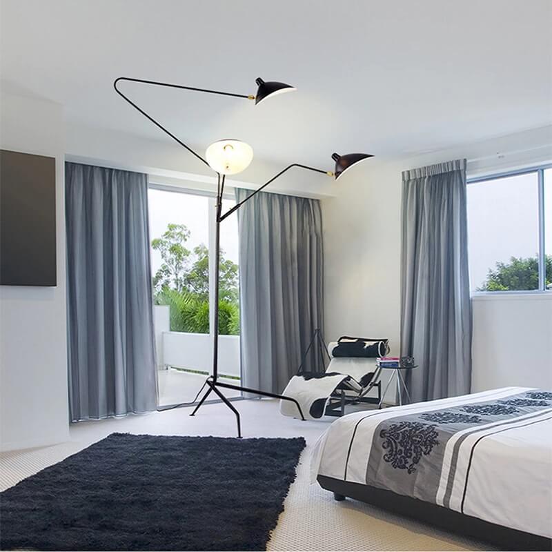 Minimalistyczna zjawiskowa i elegancka lampa podłogowa Crane w stylu loft idealna do salonu, sypialni, gabinetu.
