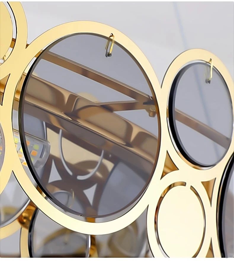 Modernistyczna ekskluzywna i piękna lampa wisząca Dubai to doskonała propozycja do wszystkich eleganckich i wyrafinowanych wnętrz. Połączenie złotych elementów z przyciemnionym lub białym szkłem świetnie się komponuje, a ich forma przywołuje na myśl art deco’wskie lub nowojorskie wnętrza.