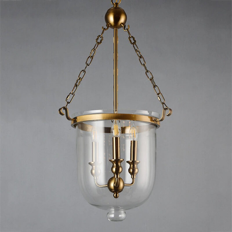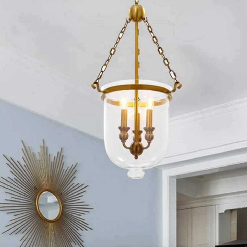 Eklektyczna mosiężna i zjawiskowa lampa wisząca Leo ze szklanym kloszem idealna do salonu, sypialni, kuchni, jadalni.