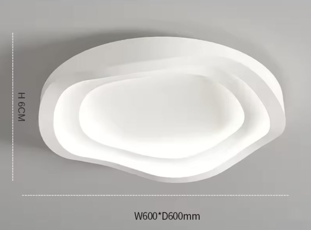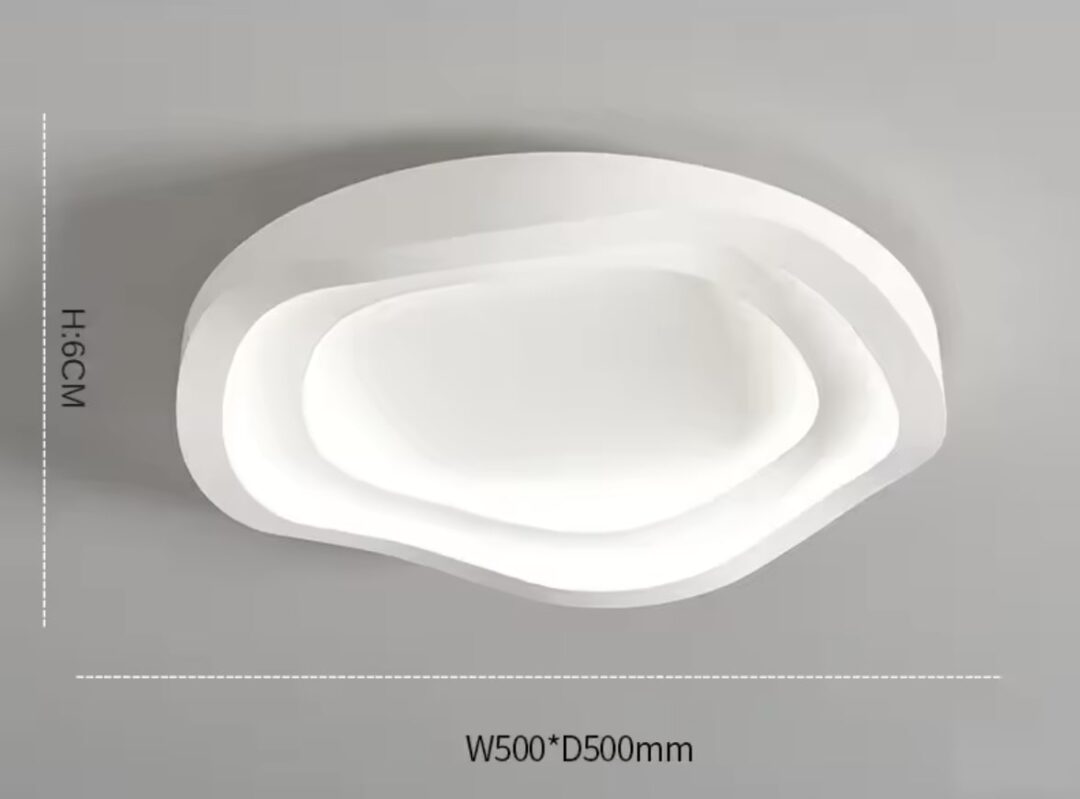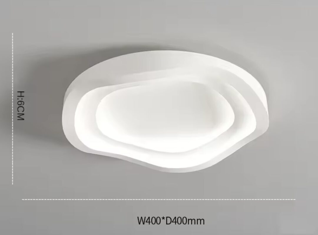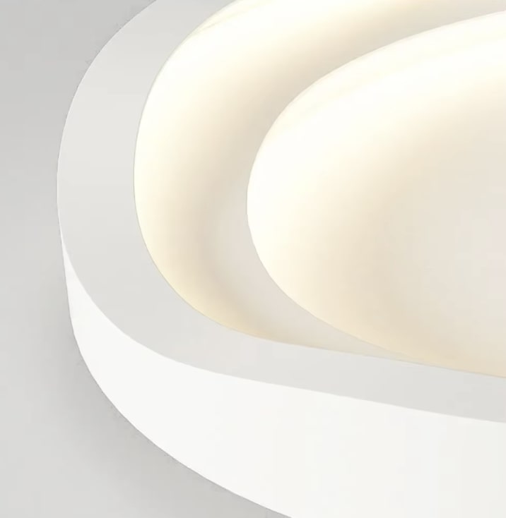 Kształt oprawy przypomina nałożone na siebie, nieregularne, zaokrąglone formy, co tworzy efekt przestrzeni i głębi na suficie. Jasne wykończenie ze światłem LED rozchodzącym się delikatnie po obwodach warstw i dającym miękkie, rozproszone światło buduje przytulną atmosferę w każdym pomieszczeniu. Lampa dla osób ceniących spokojny, harmonijny design oraz naturalne inspiracje i które chcą, aby oświetlenie było nie tylko praktyczne, ale i dekoracyjne. Będzie idealną ozdobą pomieszczeń w stylu nowoczesnym, minimalistycznym, świetnie wkomponuje się także we wnętrza skandynawskie, organiczne, modern, czy japandi.