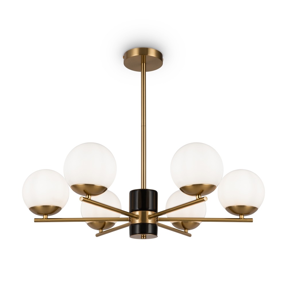 Lampa sufitowa Marble to nie tylko oświetlenie, ale również wyraziste dzieło sztuki w przestrzeni. Jej mosiężny stelaż emanuje elegancją i solidnością, tworząc harmonijne połączenie z białymi kloszami w formie kul. Te sześć lub osiem punktów świetlnych rozświetla pomieszczenie w sposób równomierny, zapewniając komfortowe warunki do pracy, relaksu lub spotkań towarzyskich.
