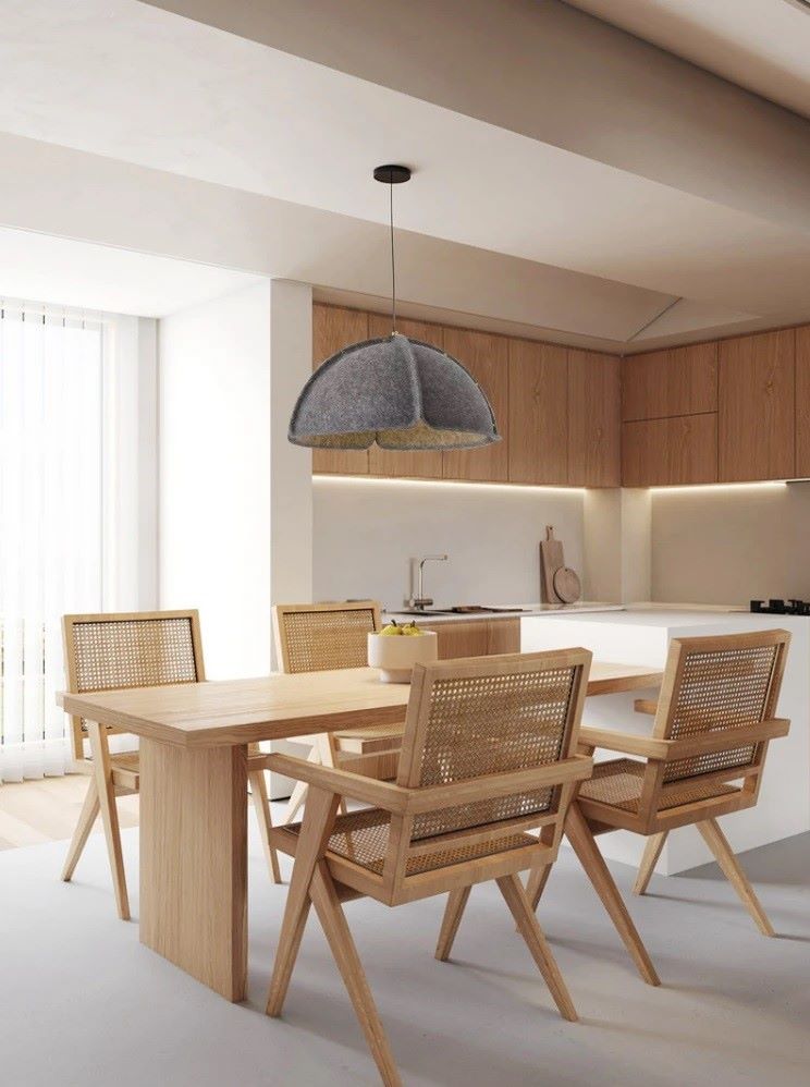 Nowoczesna skandynawska filcowa lampa wisząca Bell w kolorze szarym i beżowym idealna do salonu, sypialni, biura, jadalni.