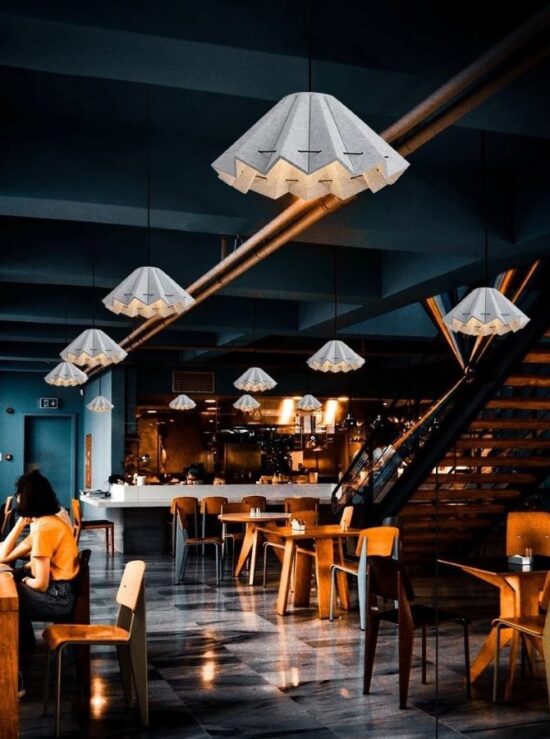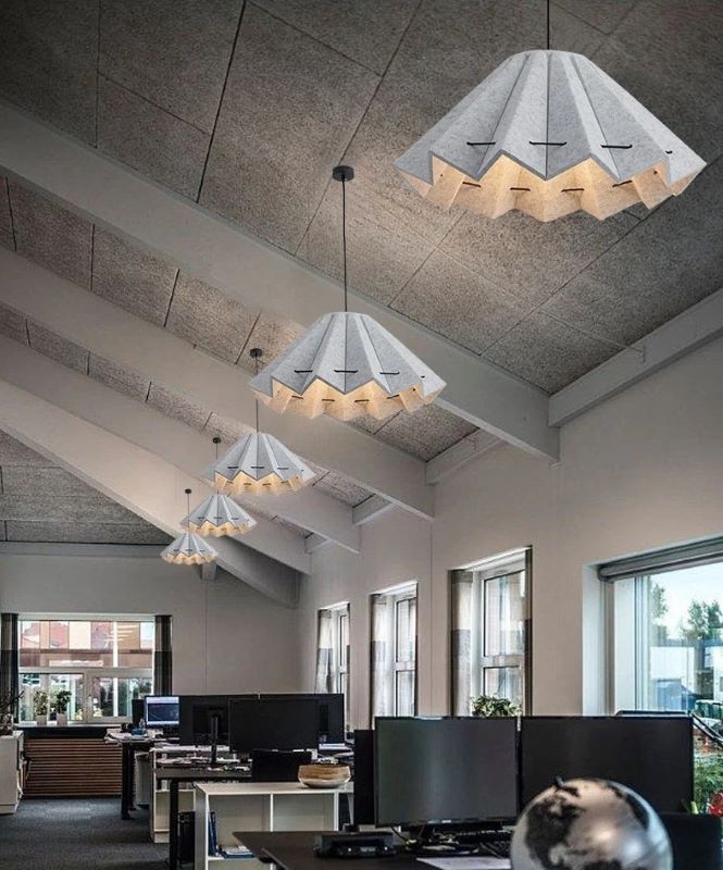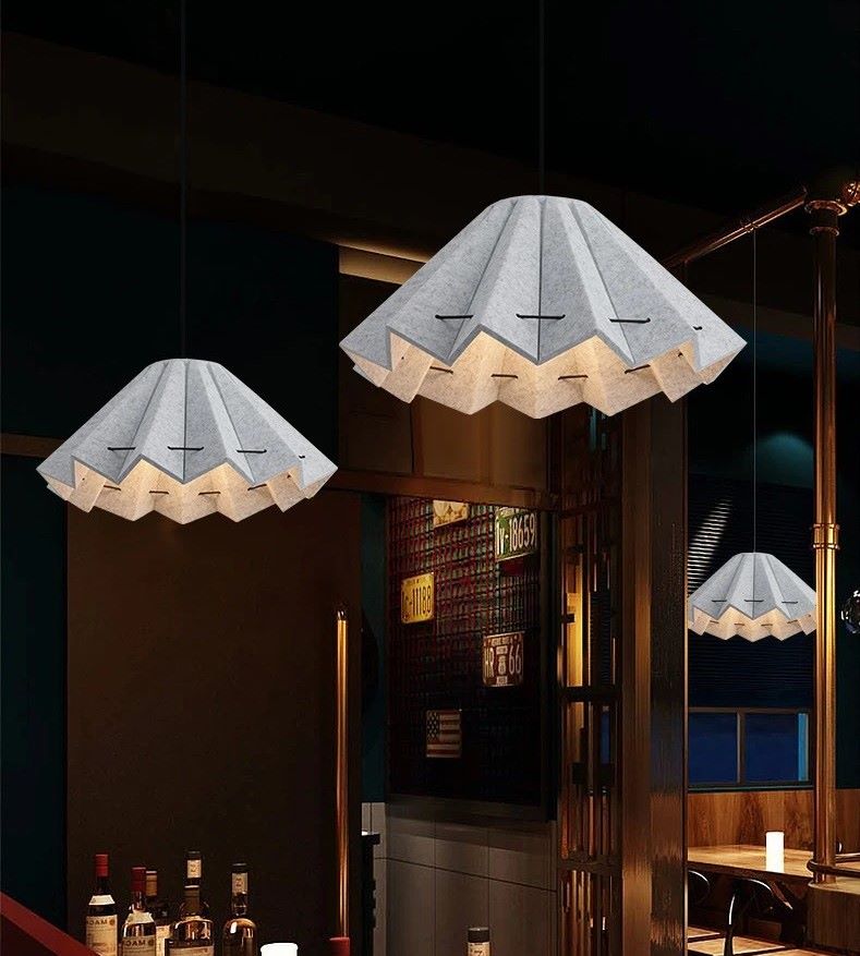 Nowoczesna skandynawska filcowa lampa wisząca Dancing w kolorze szarym idealna do salonu, sypialni, biura, jadalni.