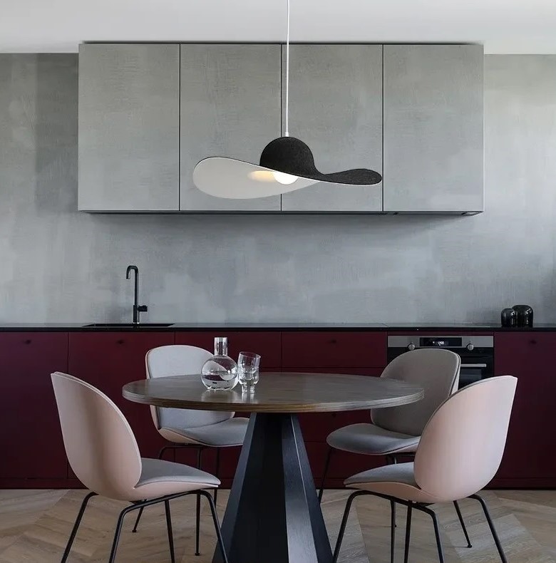 Nowoczesna skandynawska designerska lampa wisząca Hat w kolorze czarnym, szarym i czerwonym idealna do salonu, sypialni, biura, jadalni.