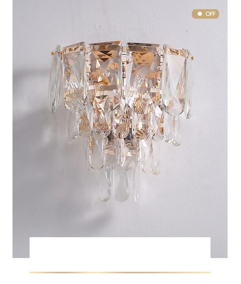 Nowoczesna Ekskluzywna Kryształowa Lampa Ścienna Chelsea Kinkiet Glamour w Kolorze Złotym