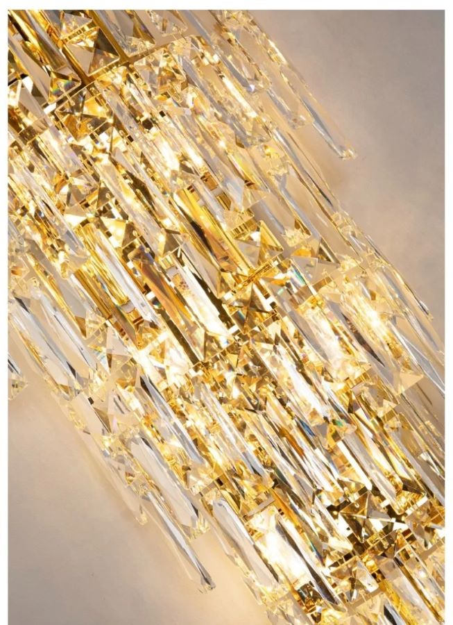 Kinkiet kryształowy Luxuria to designerska lampa ścienna, która emanuje luksusem. Jej złote i srebrne wykończenie dodaje elegancji i pasuje do każdego wnętrza o wysokim standardzie. Prezentowany model został wykończony z najwyższą precyzja, co usatysfakcjonuje nawet najbardziej wymagających. Opisywana lampa wisząca posiada konstrukcję składającą się z kryształowych wisiorków. Ta lampa ścienna doskonale wpisuje się w nowoczesne, ekskluzywne oraz aranżacje wnętrz w stylu glamour, dodając im odrobiny blasku i wyjątkowego stylu. Jest idealna zarówno do salonu, sypialni, jak i innych pomieszczeń, gdzie chcemy stworzyć niepowtarzalną atmosferę. Jeśli poszukujesz designerskiej lampy ściennej, która wzbudzi zachwyt swoim wyglądem, kinkiet kryształowy Luxuria będzie idealnym wyborem.