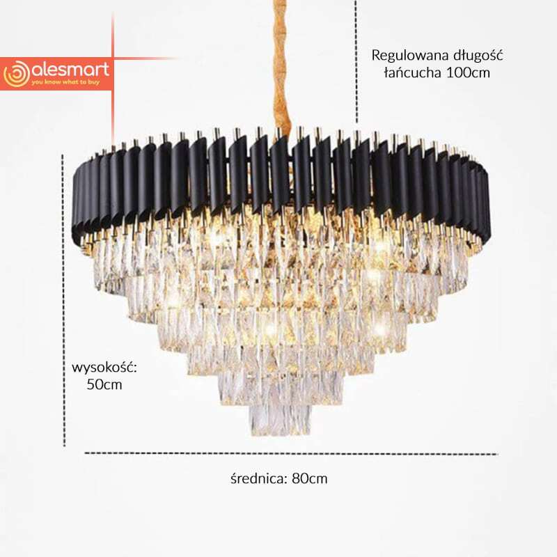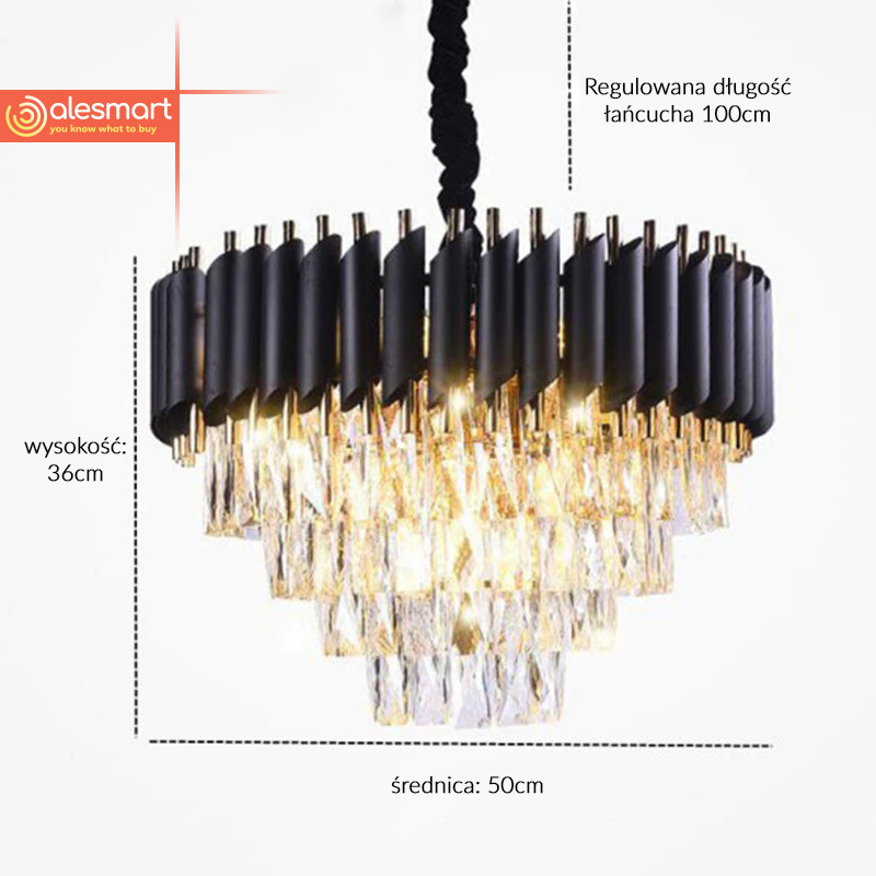 Decydując się na oświetlenie glamour, można zyskać zarówno godne uwagi rozwiązanie, które zapewni odpowiednie światło w pomieszczeniu, ale również i godną uwagi propozycję, która wypełni przestrzeń elementem dekoracyjnym. Ten kryształowy żyrandol Elza, jest tego doskonałym przykładem. Czarna konstrukcja, a do tego kryształowe, mieniące się elementy zwisające, wyglądają naprawdę fenomenalnie. Fenomenem tego żyrandola jest to, iż stanowi on produkt w pełni uniwersalny, a więc sprawdzi się zarówno w przestrzeni salonu, w jadalni, w kuchni, ale również i w luksusowym hotelu czy w ponadczasowo urządzonej restauracji. Jeśli więc idealne oświetlenie, to jak najbardziej ta propozycja, w iście nowojorskim stylu, okaże się być wyśmienitym wyborem.
