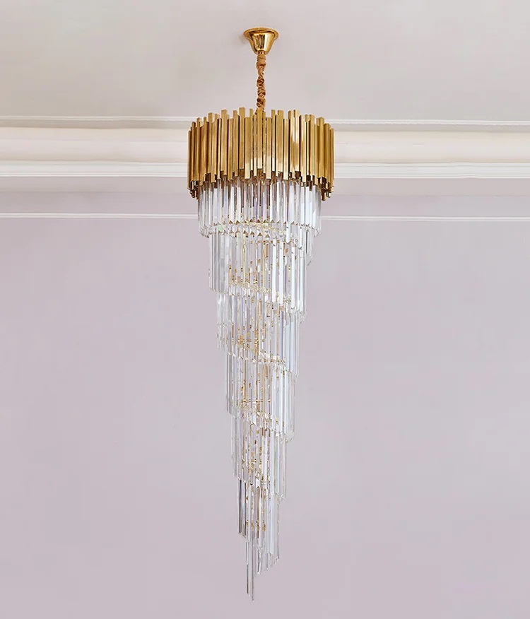 Nowoczesna Kryształowa Lampa Wisząca Gladius Żyrandol Glamour w Kolorze Złotym