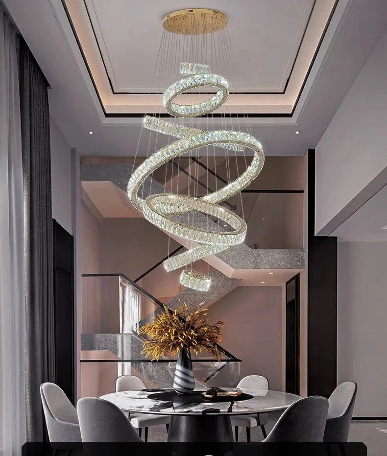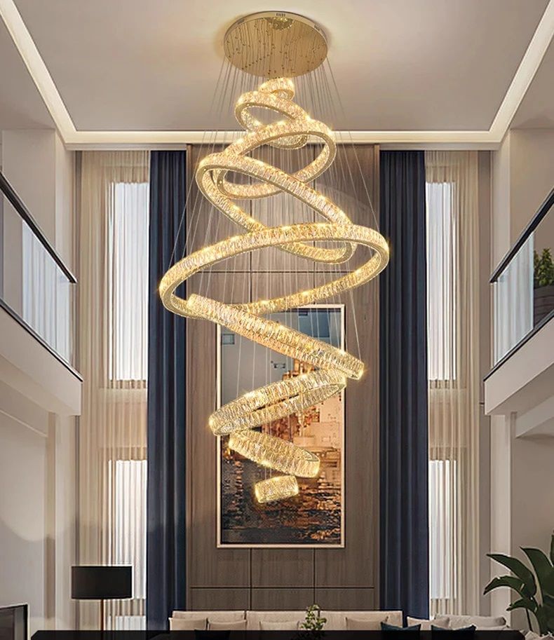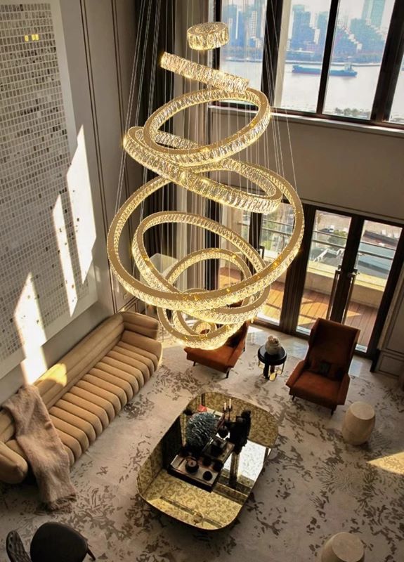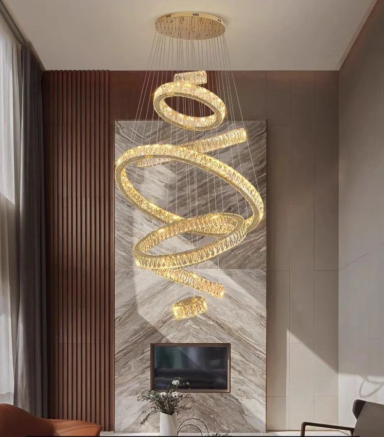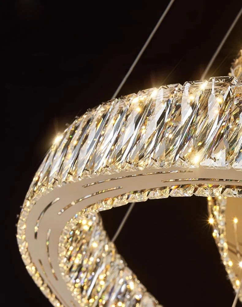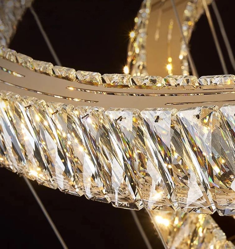 Nowoczesna Kryształowa Lampa Wisząca Loreno Żyrandol Glamour Okrągłe Ringi w Kolorze Złotym