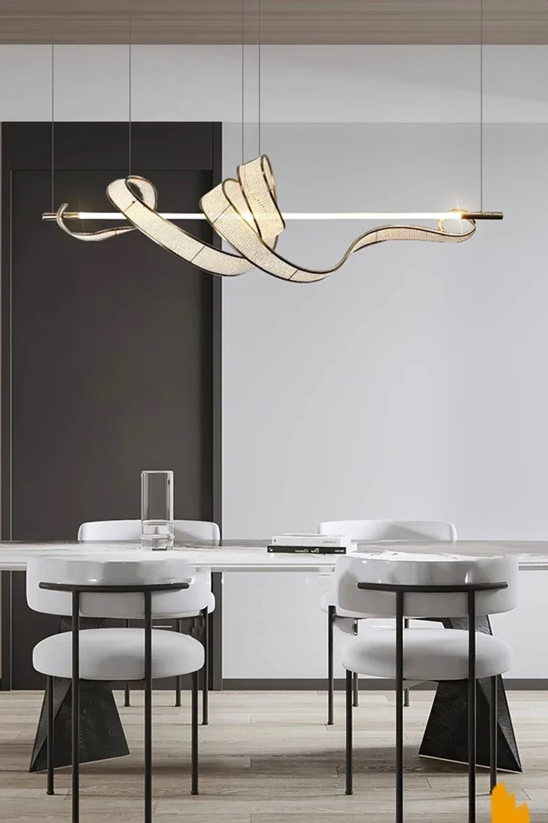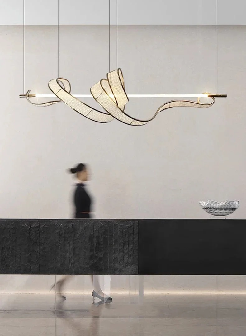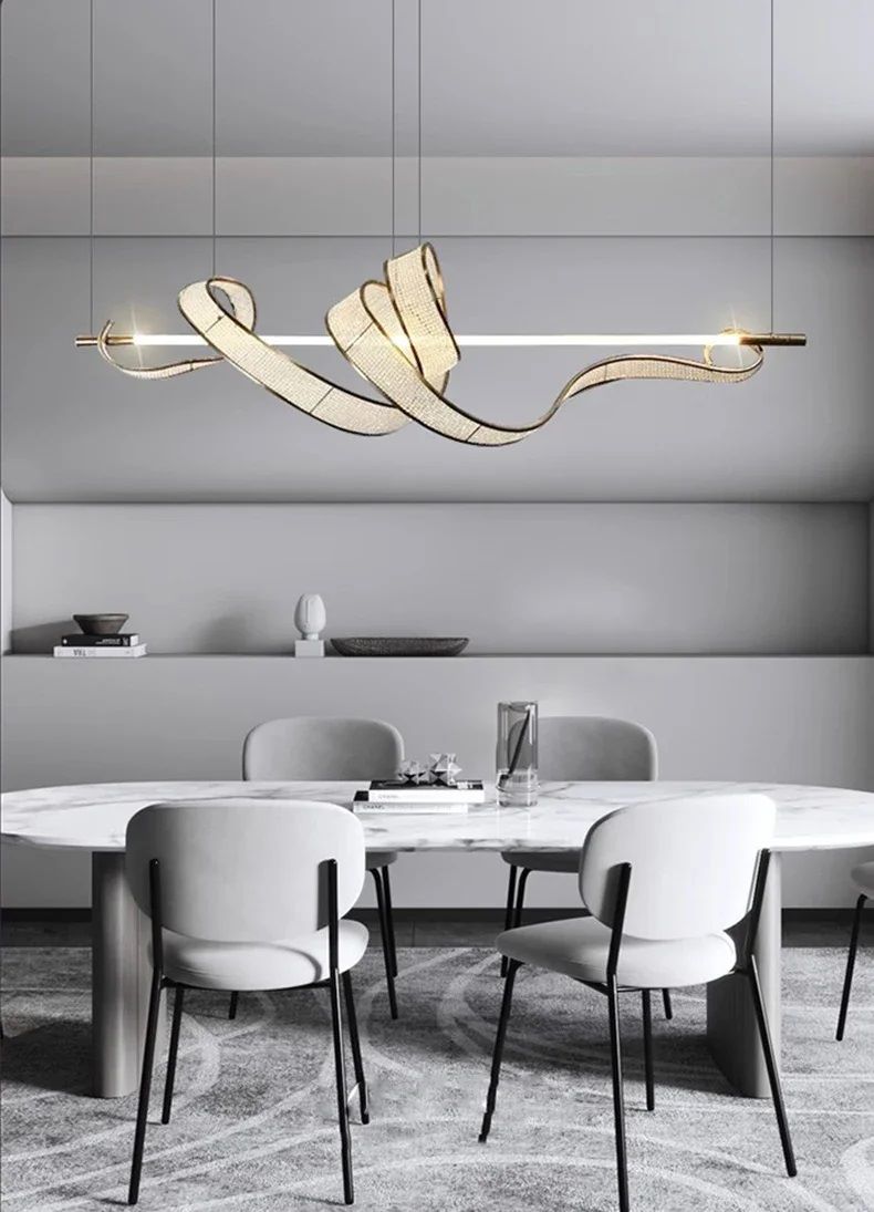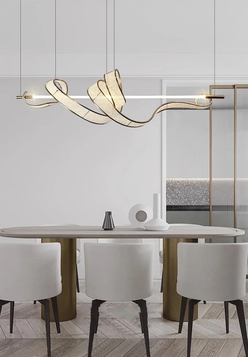 Lampa wisząca Lorinda jest propozycją dla miłośników niebanalnych rozwiązań. Cechuje ją oryginalny design oraz charakterystyczna dla stylu nowoczesnego zabawa formą i kształtem. Unikalna forma oprawy znajdzie zastosowanie w wielu wnętrzach, zarówno jako forma oświetlenia, jak i element dekoracyjny, obok którego nie można przejść obojętnie. Nieregularny kształt wstążki spełnia funkcję źródeł światła, co sprawia, że oprawa jest niepowtarzalna. Bez wątpienia nada ona każdemu wnętrzu ponadczasowego charakteru. Oświetlenie doskonale ozdobi zarówno wnętrze Twojego salonu, sypialni czy jadalni, jak i wnętrza komercyjne czy prywatne gabinety.