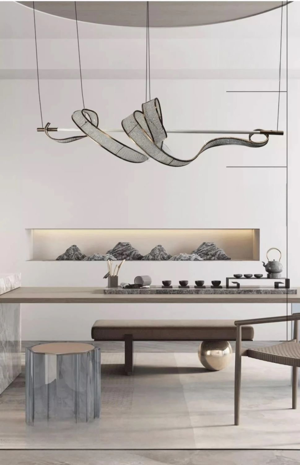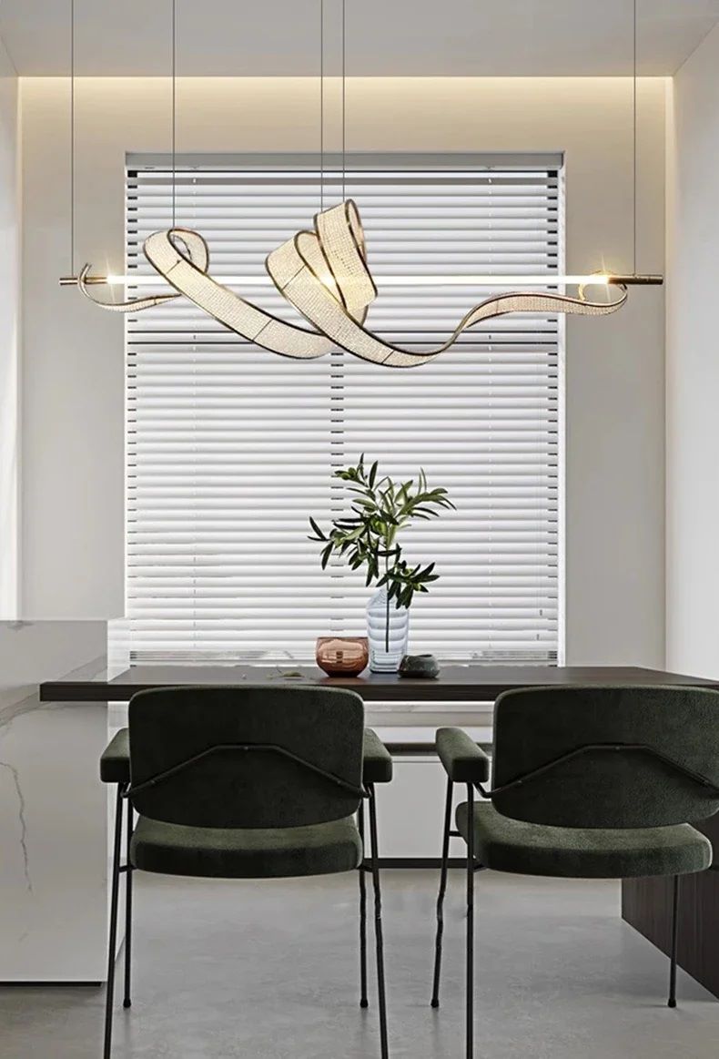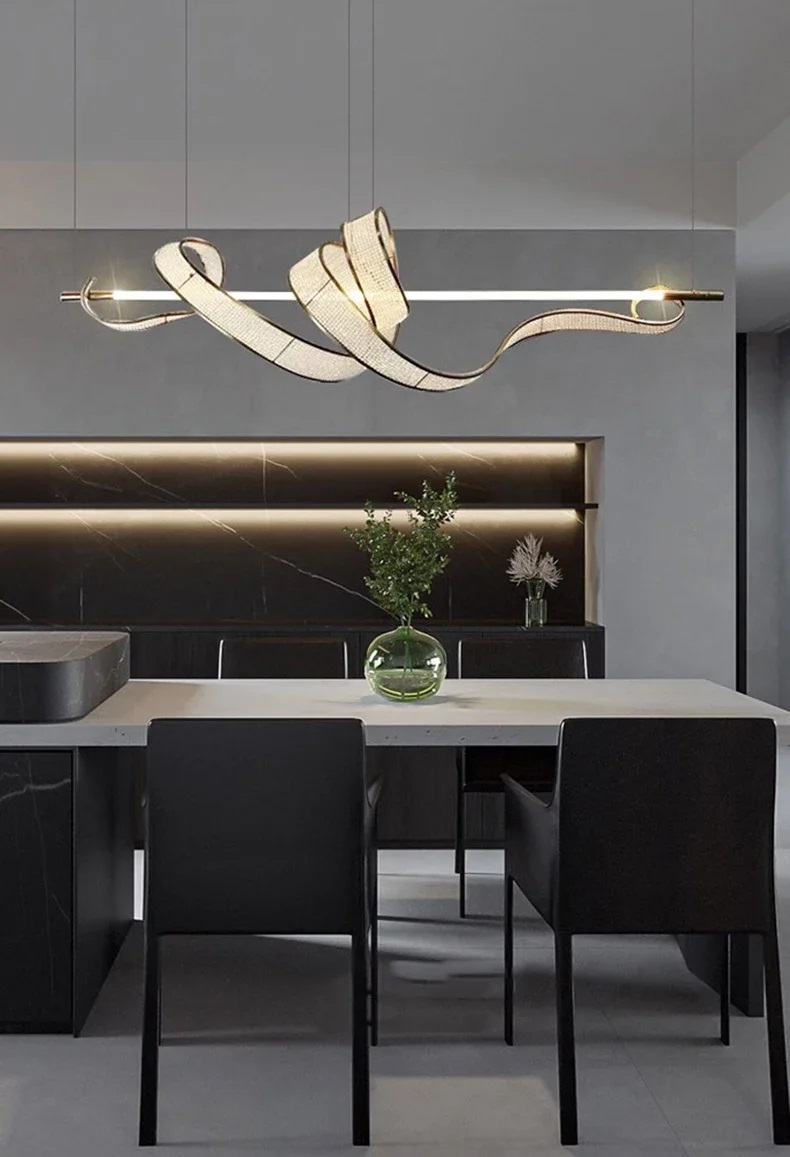 Lampa wisząca Lorinda jest propozycją dla miłośników niebanalnych rozwiązań. Cechuje ją oryginalny design oraz charakterystyczna dla stylu nowoczesnego zabawa formą i kształtem. Unikalna forma oprawy znajdzie zastosowanie w wielu wnętrzach, zarówno jako forma oświetlenia, jak i element dekoracyjny, obok którego nie można przejść obojętnie. Nieregularny kształt wstążki spełnia funkcję źródeł światła, co sprawia, że oprawa jest niepowtarzalna. Bez wątpienia nada ona każdemu wnętrzu ponadczasowego charakteru. Oświetlenie doskonale ozdobi zarówno wnętrze Twojego salonu, sypialni czy jadalni, jak i wnętrza komercyjne czy prywatne gabinety.