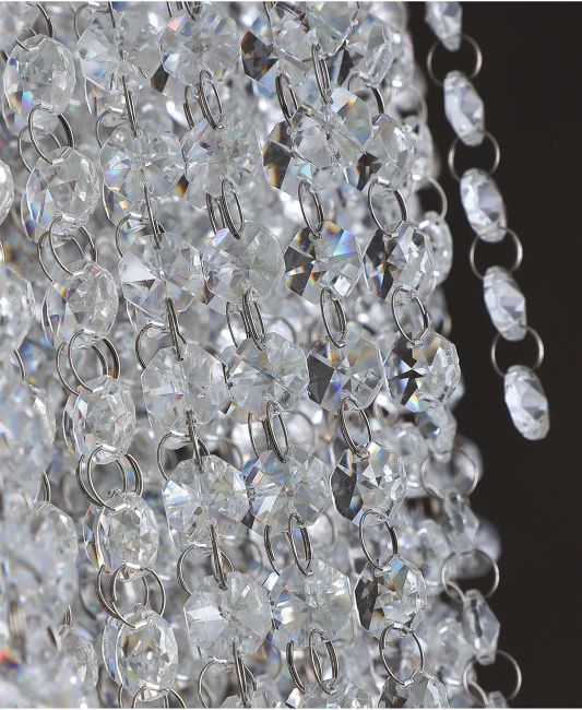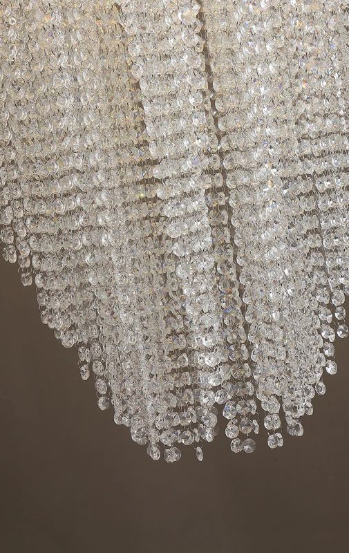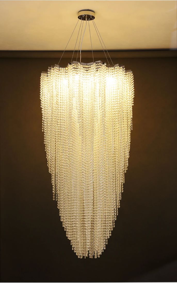 Ten przepiękny żyrandol o klasycznej, eleganckiej formie, stanie się centralnym punktem każdego pomieszczenia i sprawdzi się zarówno w przestrzeniach prywatnych, jak i komercyjnych. Za sprawą iście królewskiego wyglądu ten oszałamiający żyrandol znakomicie wpasuje się do holu, jadalni lub salonu. Wysokiej jakości kryształowe koraliki, błyszczące i bardzo przejrzyste, będą rozpraszać i odbijać światło, tworząc wspaniałą grę kolorów. Ta elegancka kryształowa lampa nada luksusowy charakter Twojemu wnętrzu.