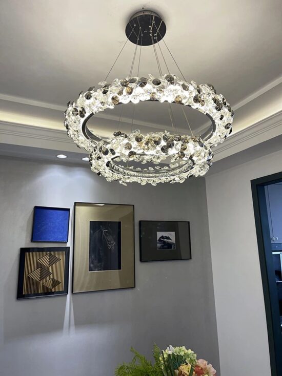 Wytworna lampa wisząca Rime z okrągłymi kryształami nadaje wnętrzu prawdziwy art deco i klasyczny wygląd. Tęczowe kolory światła rozprzestrzeniają się z oświetlonej lampy ze wspaniałymi refleksami! Ten kolorowy połysk jest możliwy dzięki masywnym kryształowym wisiorkom, które są podstawą wystroju eleganckiej lampy wiszącej. Metalowa podstawa lampy w kolorze chromu z elementami dekoracyjnymi, służy jako podstawa do mocowania nici kryształowych. Lampa dzięki swoim pięknym kryształom przyciąga wzrok w domu.