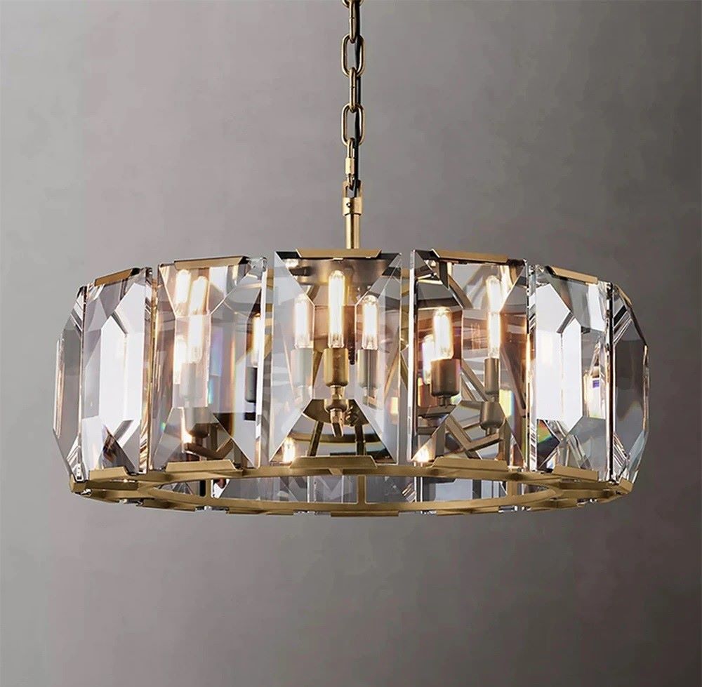 Klasyczny żyrandol kryształowy Vitulace okrągły lub podłużny na łańcuchach, kryształy duże pionowe ułożone blisko siebie w złotej lub czarnej ramie. Taki żyrandol sprawdzi się w aranżacjach klasycznych, pałacowych, ale też w nowoczesnych, glamour i industrialnych, jako interesujący kontrapunkt aranżacyjny, jako oświetlenie centralne, nad stół, wyspę kuchenną, do salonu, sypialni, kuchni, jadalni, sali balowej i do holu. Wraz z innymi lampami z tej samej kolekcji stworzy bardzo ekskluzywny i luksusowy zestaw oświetleniowy. Lampy kryształowe nie tylko pięknie wyglądają, ale świetnie rozpraszają światło, tworzą spektakl światło cieni na suficie i na powierzchni, nad którą wiszą.