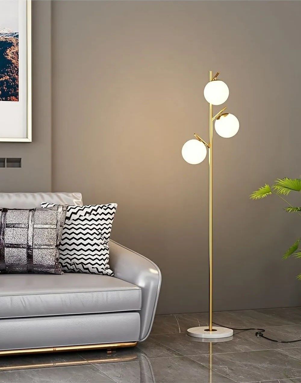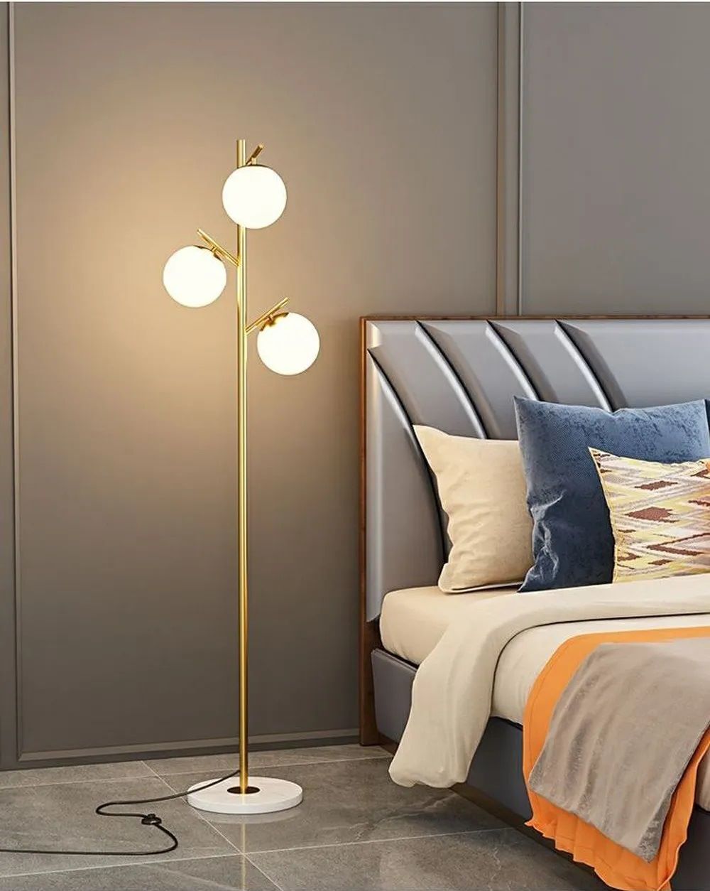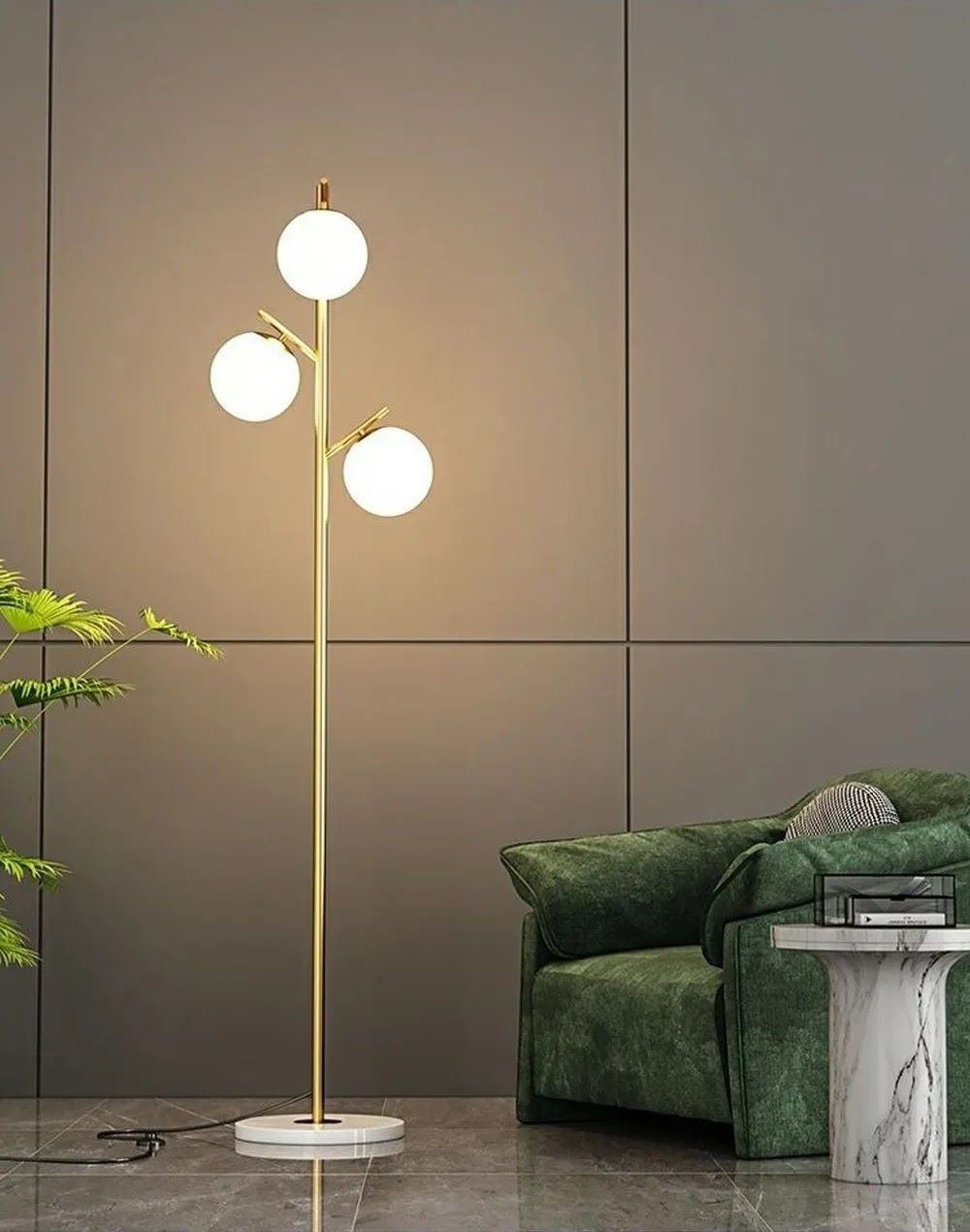 Nowoczesna Elegancka Minimalistyczna Lampa Podłogowa Carrara ze Szklanymi Kulami w Kolorze Złotym