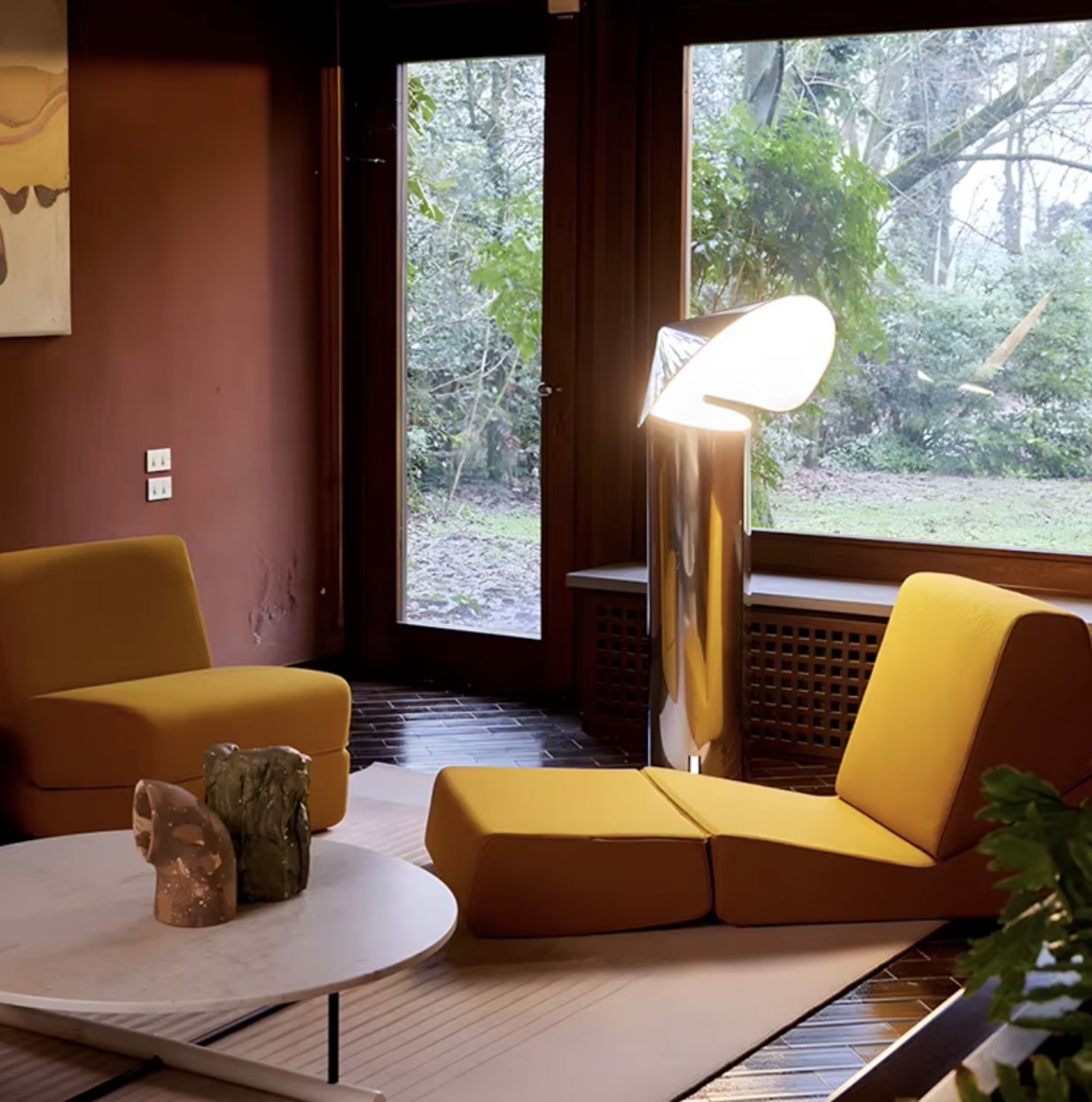 Nowoczesna lampa podłogowa Flos Chiara Hat, luksusowe oświetlenie do salonu, gabinetu, przestrzeni komercyjnych.