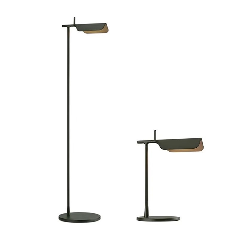 Nowoczesna minimalistyczna lampa podłogowa Flos Tab w kolorze czarnym i białym idealna do salonu, gabinetu.