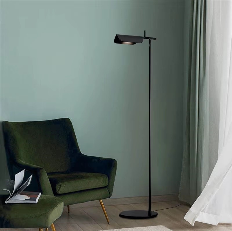 Nowoczesna lampa podłogowa Flos Tab to praktyczne oświetlenie do gabinetu, sypialni czy aranżacji salonu. Tab to minimalistyczna lampa stojąca o nowoczesnym charakterze. Składa się okrągłej podstawy, stojaka przymocowanego na jej krańcu oraz wygiętego klosza, który przypomina zadaszenie karmnika dla ptaków. Regulowana głowica pozwala na ustawienie dogodnego kąta padania skupionego strumienia światła.