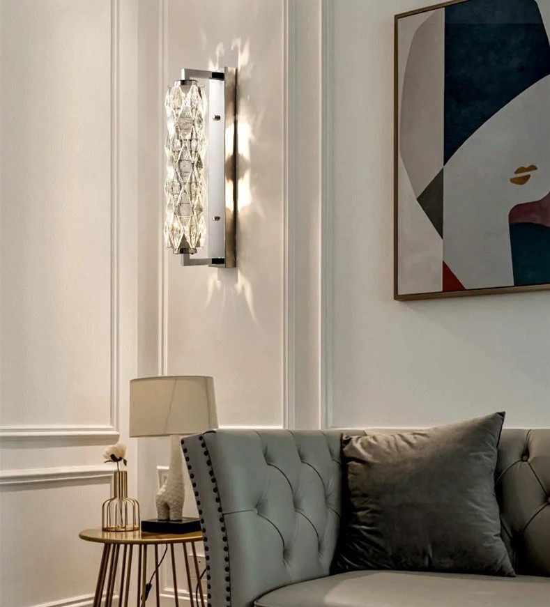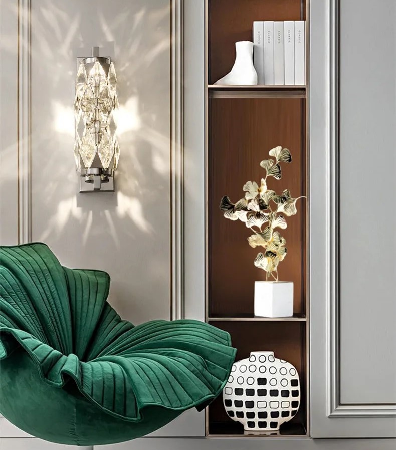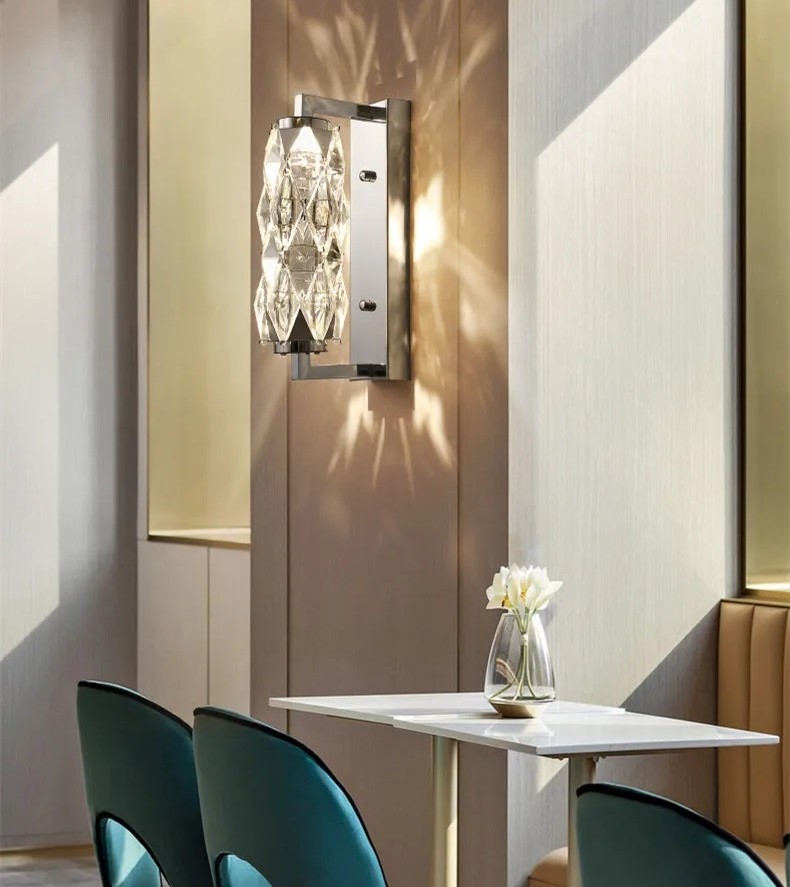 Nowoczesna Elegancka Lampa Ścienna Bijou Kinkiet Glamour w Kolorze Srebrnym