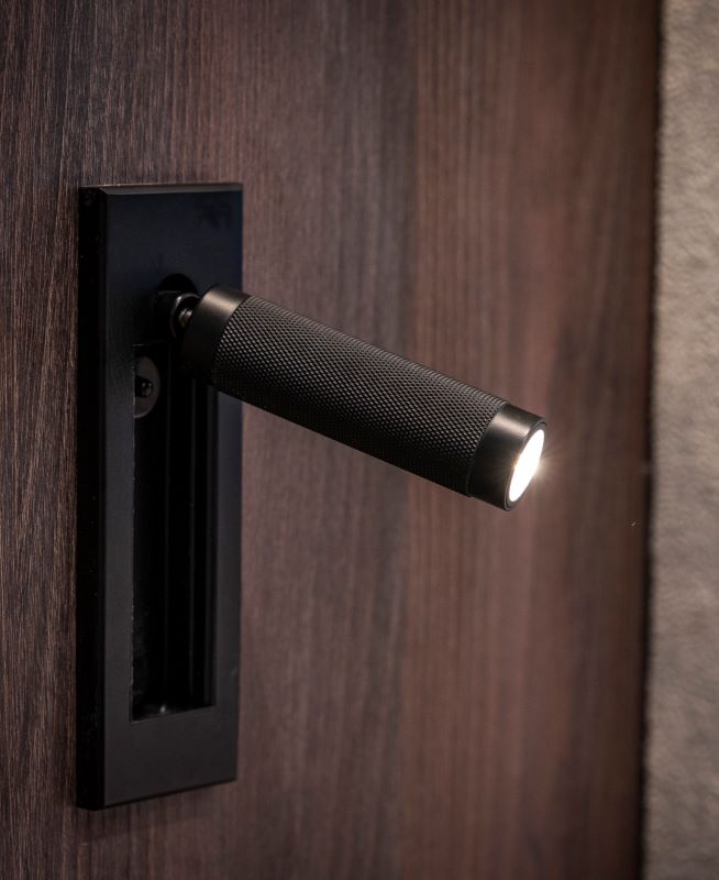 Nowoczesna elegancka i stylowa lampa ścienna Chelsom Dock Knurl. Kinkiet metalowy w różnych kolorach idealny do sypialni i czytania.