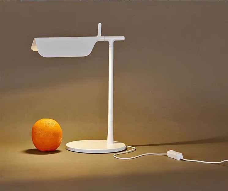 Nowoczesna lampa stołowa Flos Tab to praktyczne oświetlenie do gabinetu, sypialni, czy aranżacji salonu. Tab to minimalistyczna lampa o nowoczesnym charakterze. Składa się z okrągłej podstawy, stojaka przymocowanego na jej krańcu oraz wygiętego klosza, który przypomina zadaszenie karmnika dla ptaków. Regulowana głowica pozwala na ustawienie dogodnego kąta padania skupionego strumienia światła.