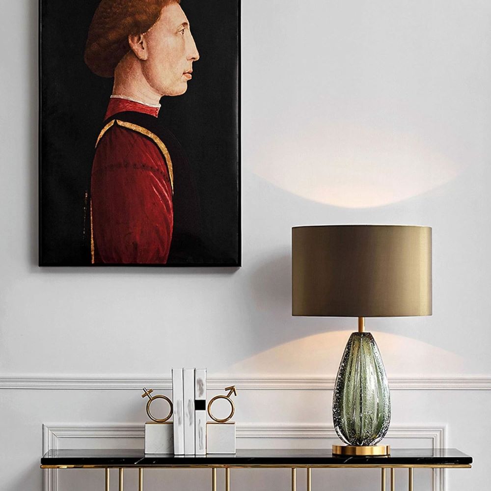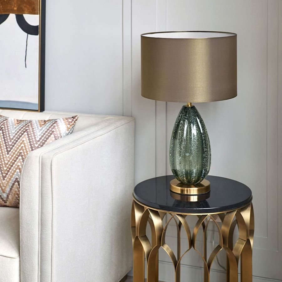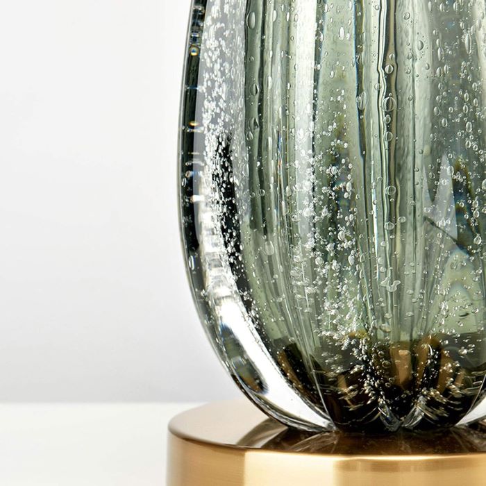 Klasyczna i elegancka lampa stołowa Torian o szklanej podstawie wypełnionej bąbelkami, doskonale uzupełni nowoczesną i klasyczną aranżację. Jest to oryginalny dodatek do sypialni lub salonu, może być również ozdobą gabinetu oraz hallu. Jest to wspaniały dodatek do wnętrz w stylu klasycznym oraz modern classic, w których docenia się eleganckie dodatki wykonane z niezwykłą precyzją. Lampa cechuje się funkcjonalnością, a jej uniwersalna forma sprawi, że jej blask światła wprowadzi komfortową i przytulną atmosferę sprzyjającą spotkaniom towarzyskim, jak i odpręży po dniu spędzonym poza domem w spokojne wieczory z najbliższymi.