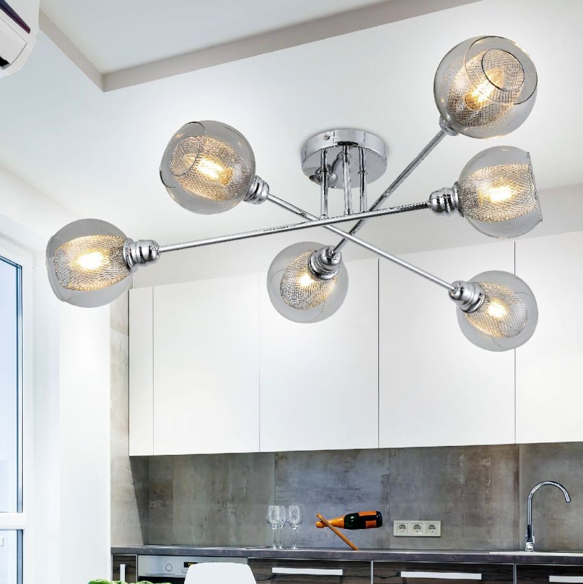 Cała podstawa lampy wykonana jest z metalu, wykończona w kolorze błyszczącego chromu. Nowoczesną lampę wyróżniają podwójne klosze, zewnętrzny z przezroczystego szkła, wewnętrzny ażurowy z metalowej chromowanej siateczki. Wspólnie rozpraszają światło, zapewniając dodatkowe efekty świetlne. Lampa będzie ozdobą każdego nowoczesnego wnętrza: salonu, kuchni, jadalni, korytarza, hotelowego holu, biura. W lampie zastosowano 6 źródeł światła na gwint E14, co daje możliwość oświetlenia nawet większych pomieszczeń. Lampa DIXI wkomponuje się we wnętrza w nowoczesnym, modernistycznym stylu, ale będzie również współgrać ze stylem boho.