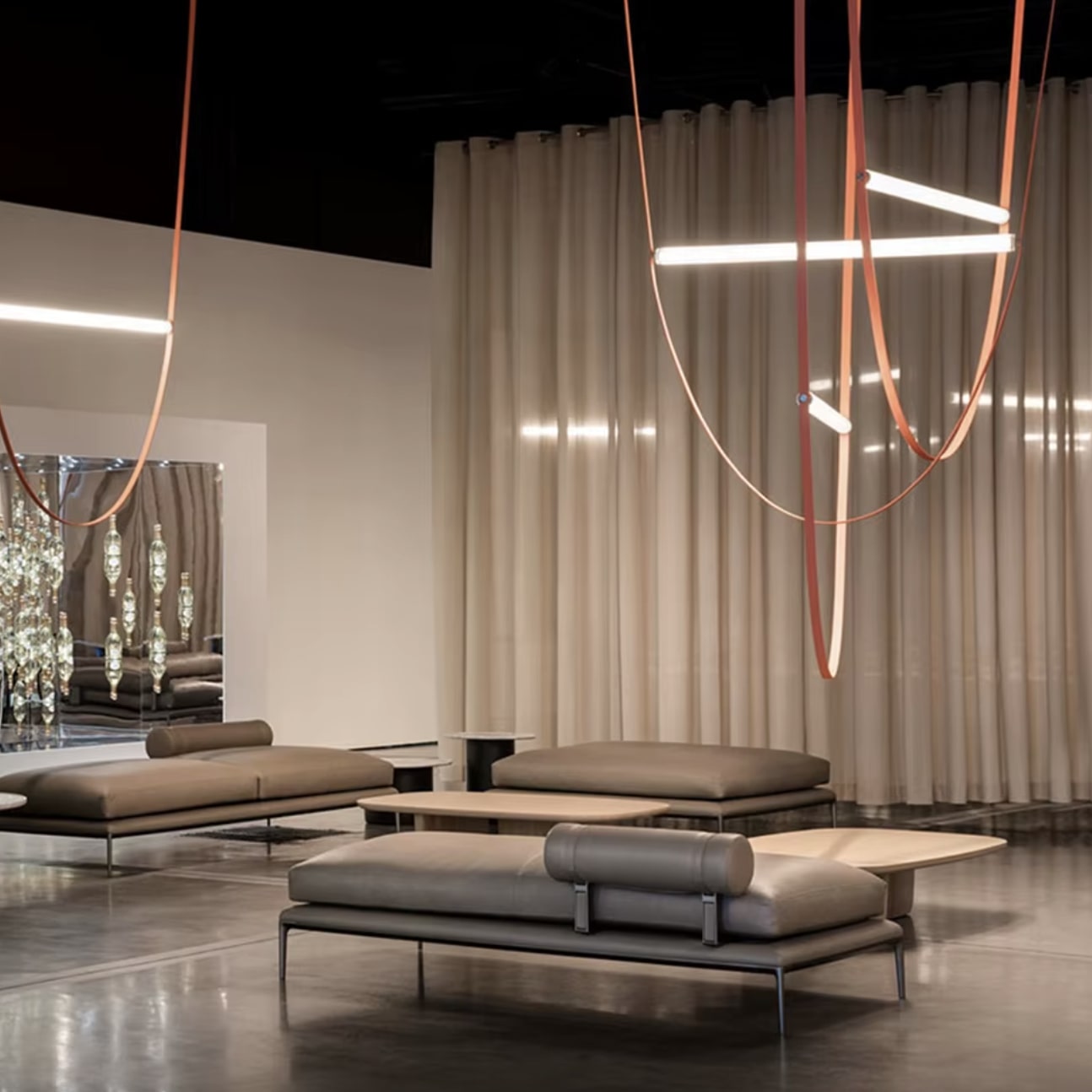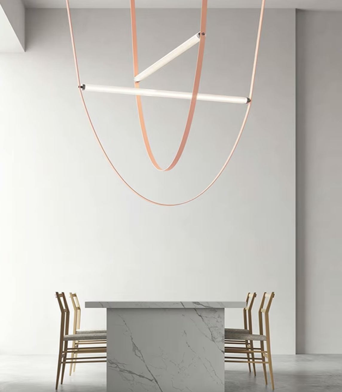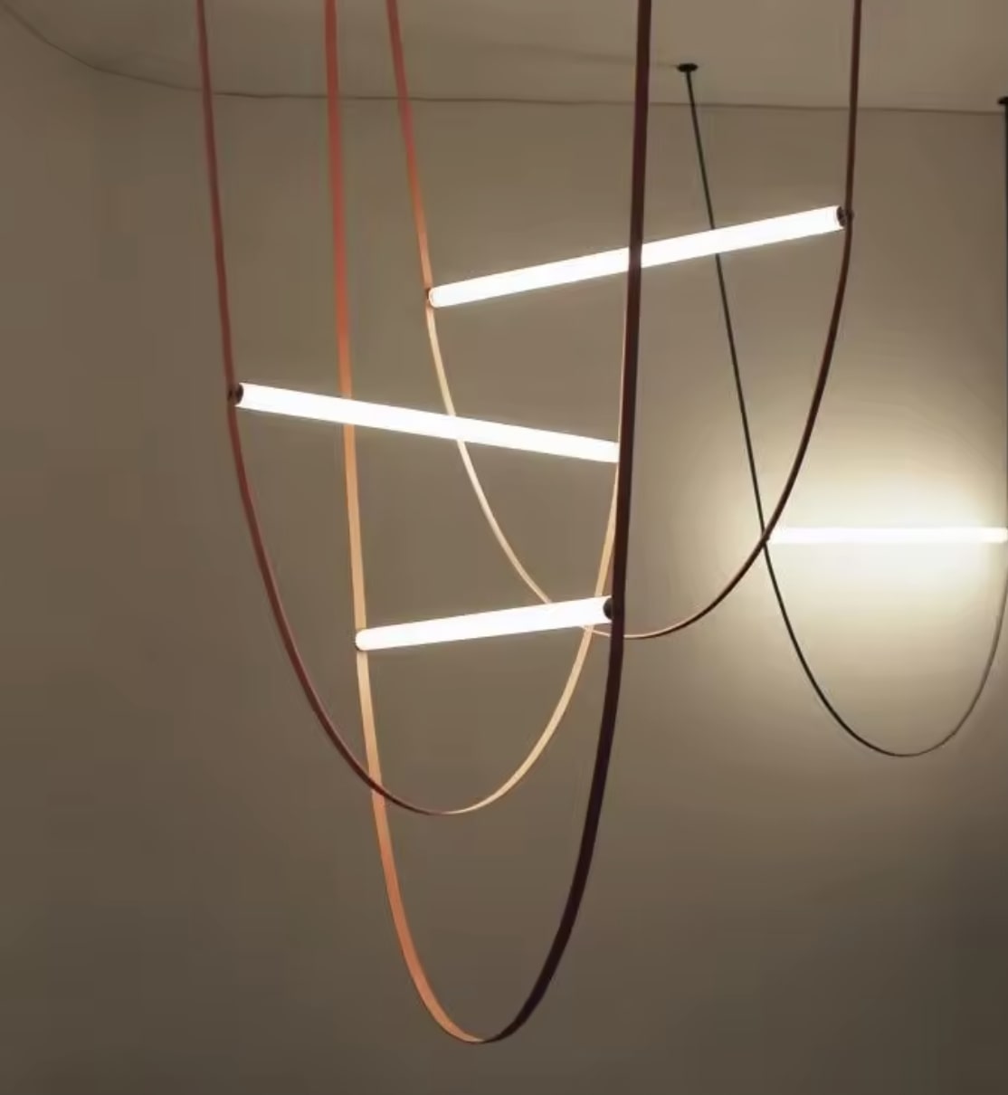 Nowoczesna Lampa Sufitowa LED Skórzany Pas. Doskonałe oświetlenie do salonu, holu, restauracji, sali bankietowej, hotelu.