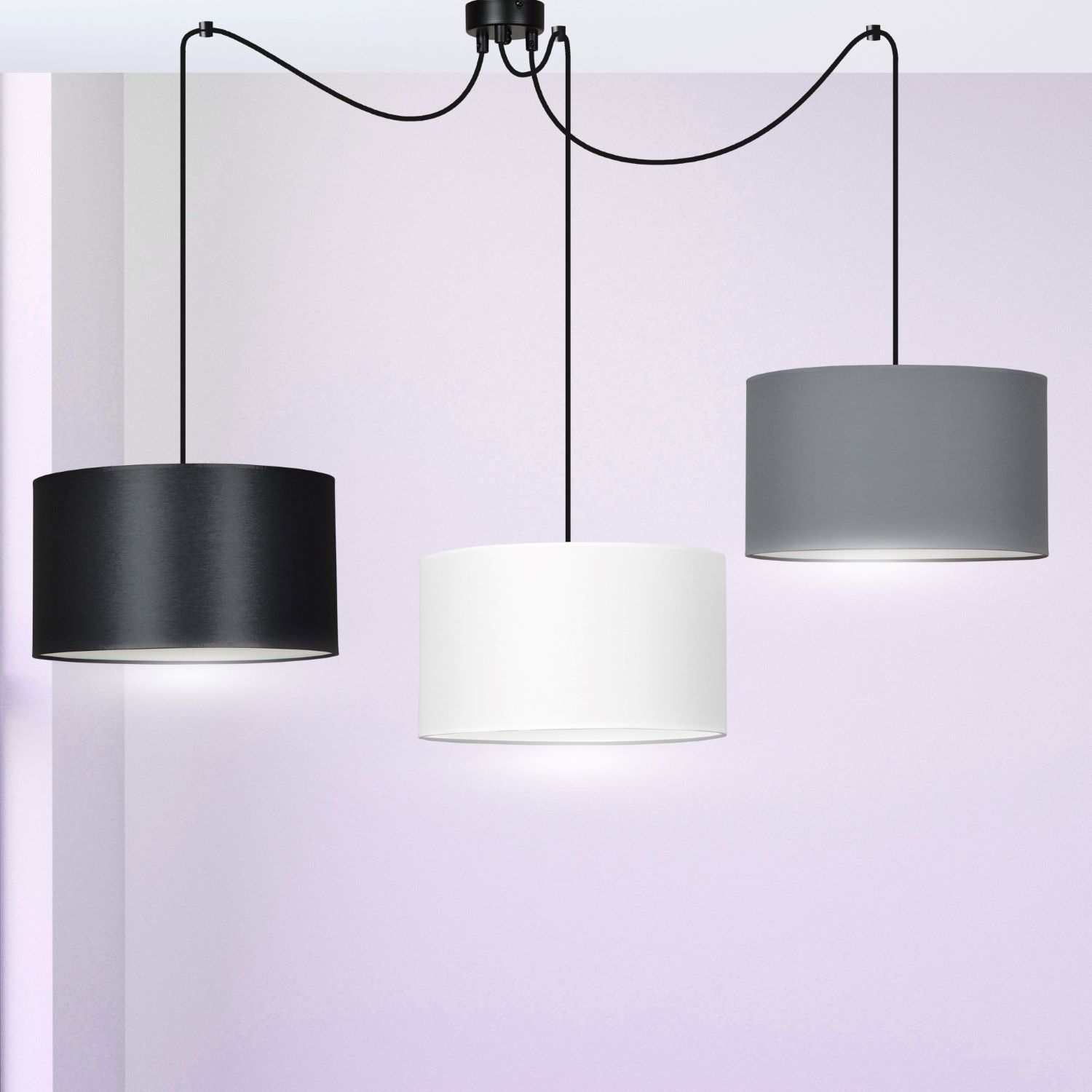Lampa wisząca Roto to klasyczna i ponadczasowa lampa sufitowa, która idealnie wpasuje się zarówno w tradycyjny jak i nowoczesny styl wnętrz. Trwały i odporny abażur w kilku kolorach do wyboru pozwala stworzyć wiele ciekawych aranżacji. Lampa Roto pięknie doświetla pomieszczenie, a długie przewody umożliwiają dopasowanie układu abażurów według indywidualnych preferencji. Produkt wykonany z materiałów najwyższej jakości.