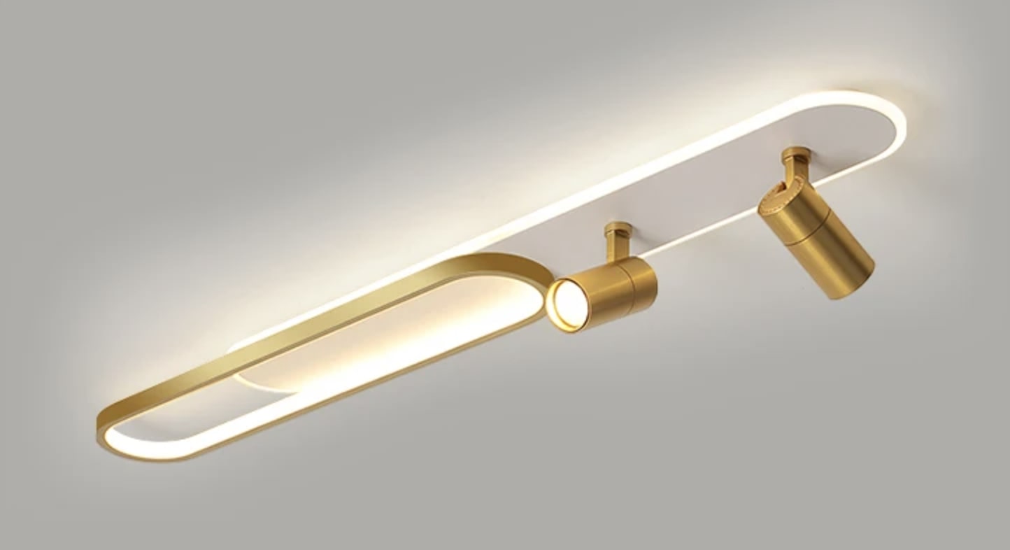 Nowoczesna lampa sufitowa LED z reflektorami. Idealne połączenie oświetlenia głównego i punktowego do salonu, biura, korytarza, garderoby.