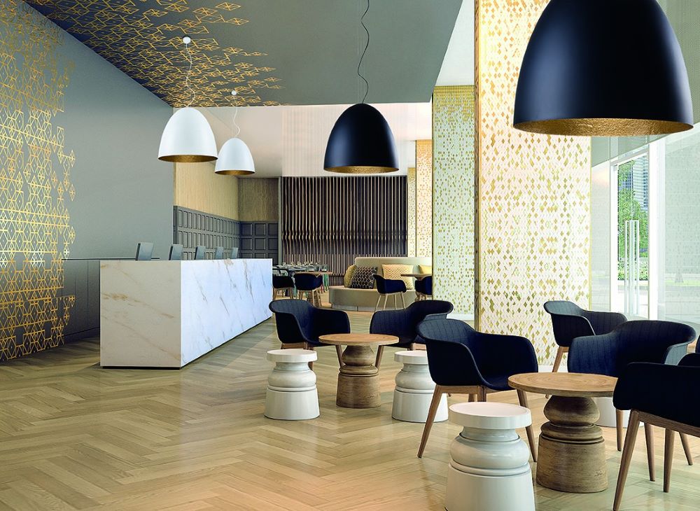 W przestrzeni lub przestrzeniach o otwartym planie tj. hole hotelowe, lampa ta wprowadzi industrialny akcent.