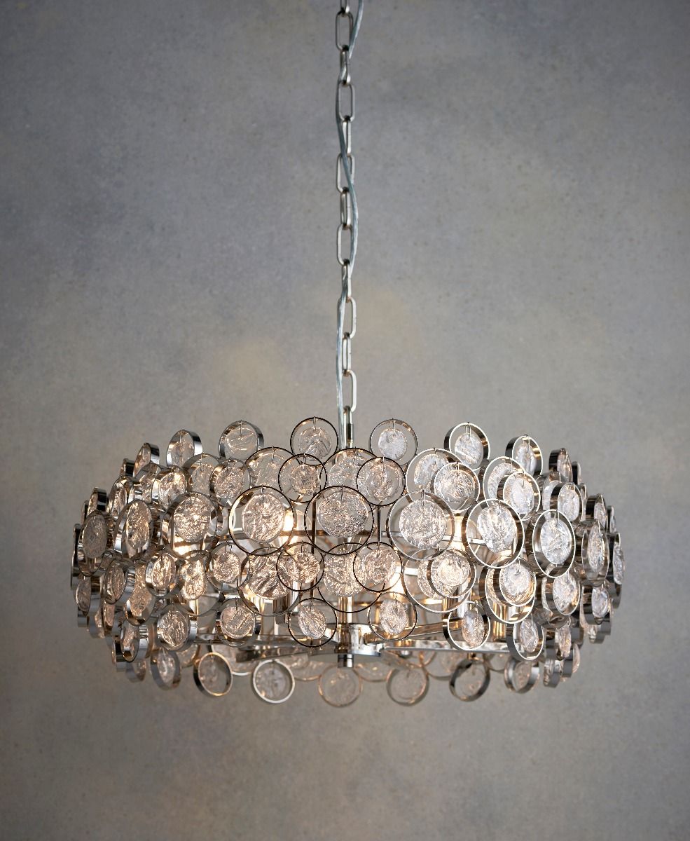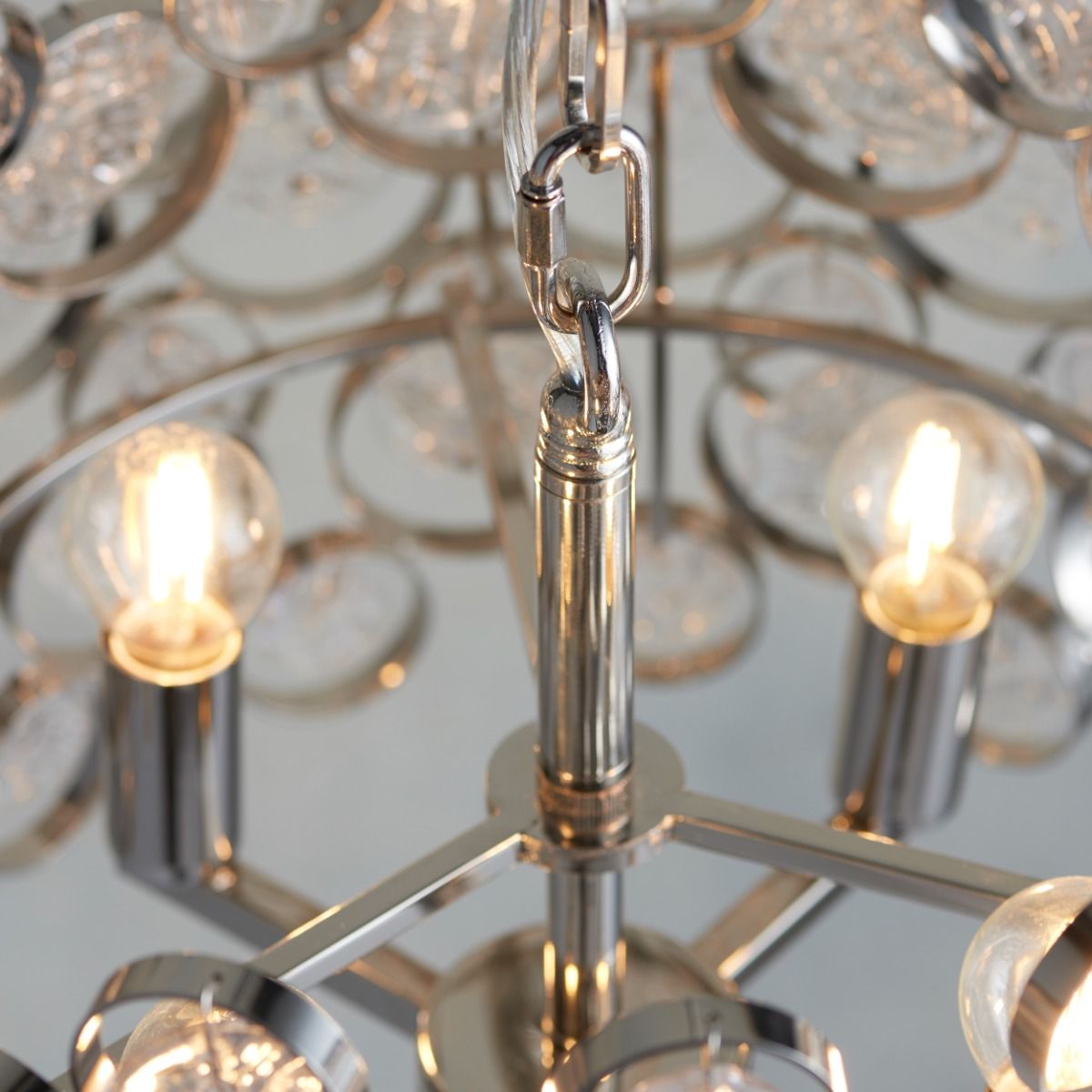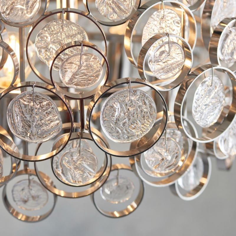 Marella to ekskluzywna angielska lampa wisząca, która wyróżnia się zwartą budową i bogato zdobioną, niejednorodną konstrukcją. Efekt ten zawdzięczamy zaimplementowanym w niej szklanym dekoracjom, które emanują niezwykle bogatą feerią padających, świetlnych refleksów. Lampa jest oszałamiającym centralnym elementem do zawieszenia w sypialni, zawieszenia nad stołem jadalnym lub umieszczenia w ukochanym wnętrzu. Idealna do stosowania z żarówkowymi lampami LED, wykończona w kolorze jasnego niklu.