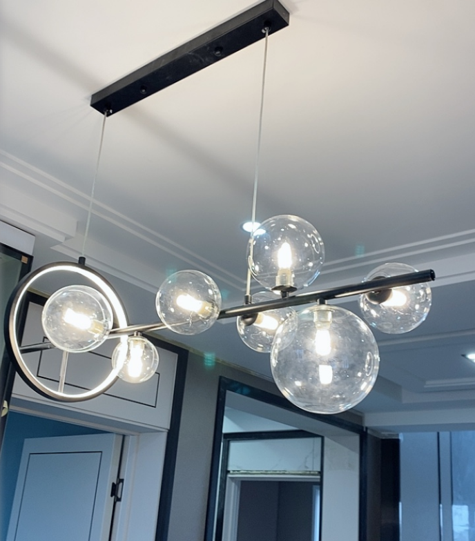 Nowoczesna Lampa Wisząca Orion z Bąbelkami Szklanymi Czarna