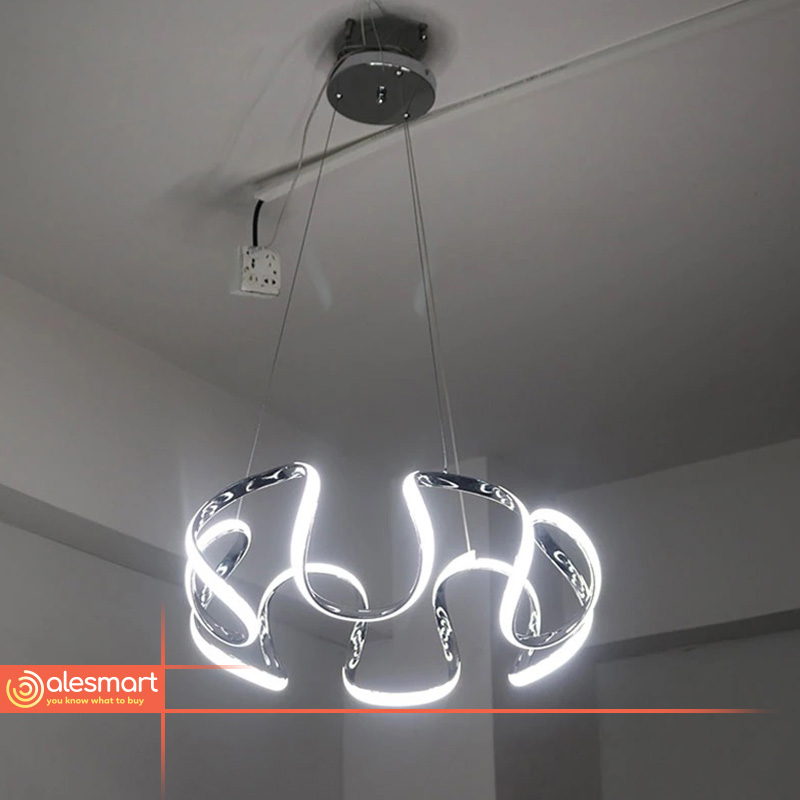Nowoczesna futurystyczna lampa wisząca Palmira LED powyginana w różnych kolorach idealna do salonu, sypialni, jadalni.