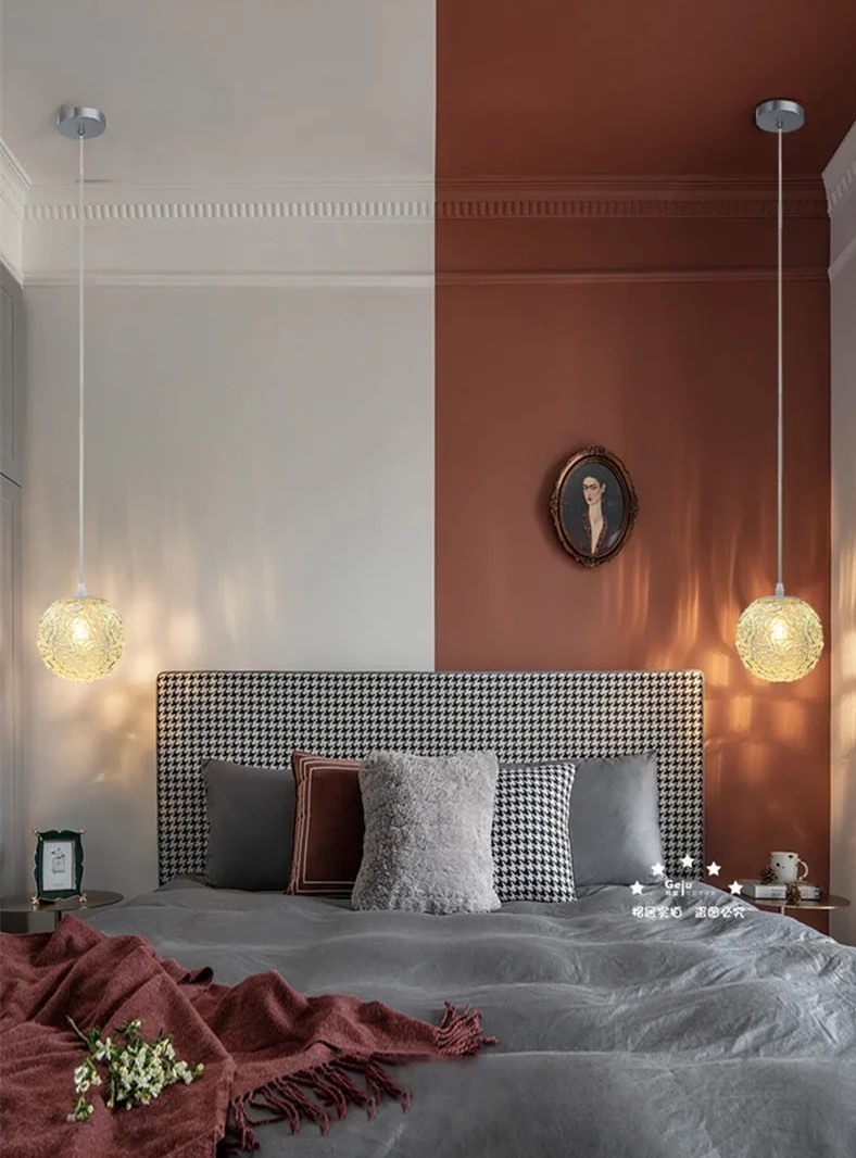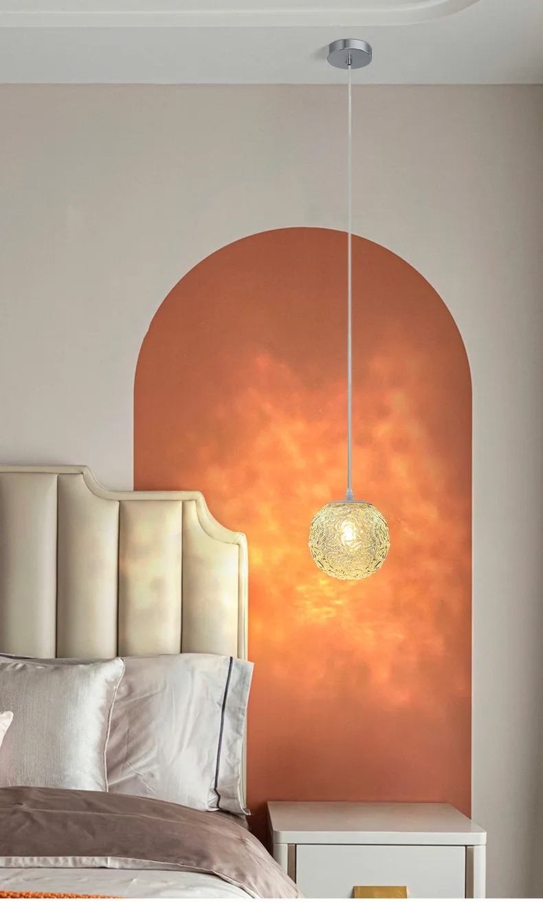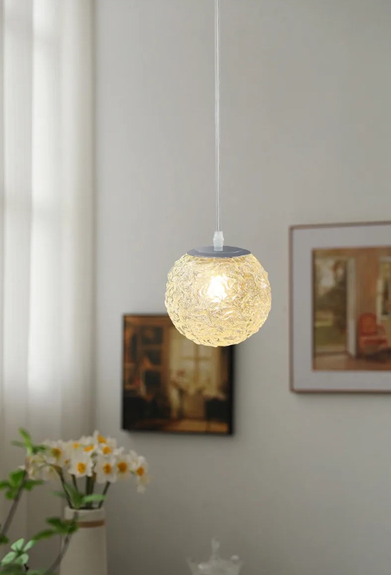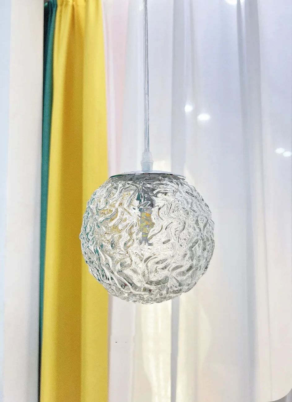 Ponadczasowa forma kuli została ozdobiona geometrycznym, żłobionym wzorem, który nadaje jej nowoczesnego charakteru. Do tego srebrna podsufitka, która podkreśla ciekawy design. To lampa odpowiednia do salonu, sypialni, a także kuchni.