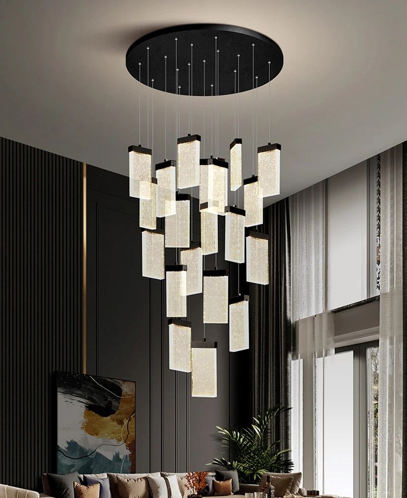 Nowoczesna Designerska Lampa Wisząca Prostokąty Żyrandol w Kolorze Czarnym
