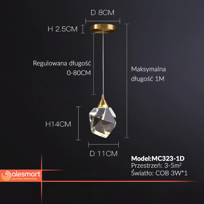 Niepowtarzalna linia wzornicza wiszącego diamentu. Lampa wisząca Rocio wykonana z kryształu czystego i jasnego, opracowana z uwzględnieniem najwyższych oczekiwań klientów ceniących nowoczesny design przy tworzeniu niepowtarzalnych aranżacji wnętrz glamour. Lampa to nie tylko źródło światła, jest to przede wszystkim element dekoracyjny każdego domu. Co więcej, połączenie minimalistycznego designu z prostymi liniami nadaje ponadczasowego klimat Twojemu wnętrzu.