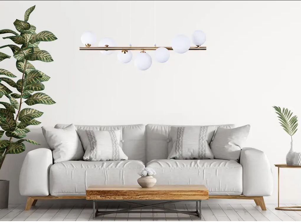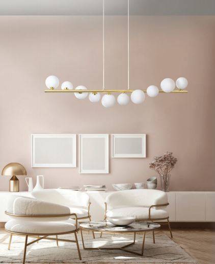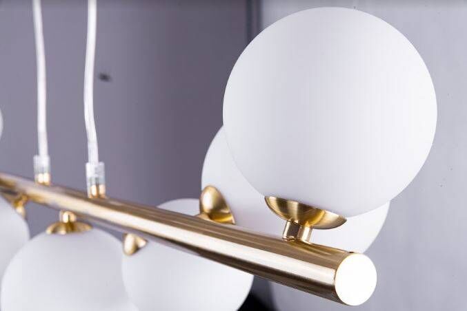 Nowoczesna Lampa Wisząca Sybilla Żyrandol Podłużny Szklane Kule Złota